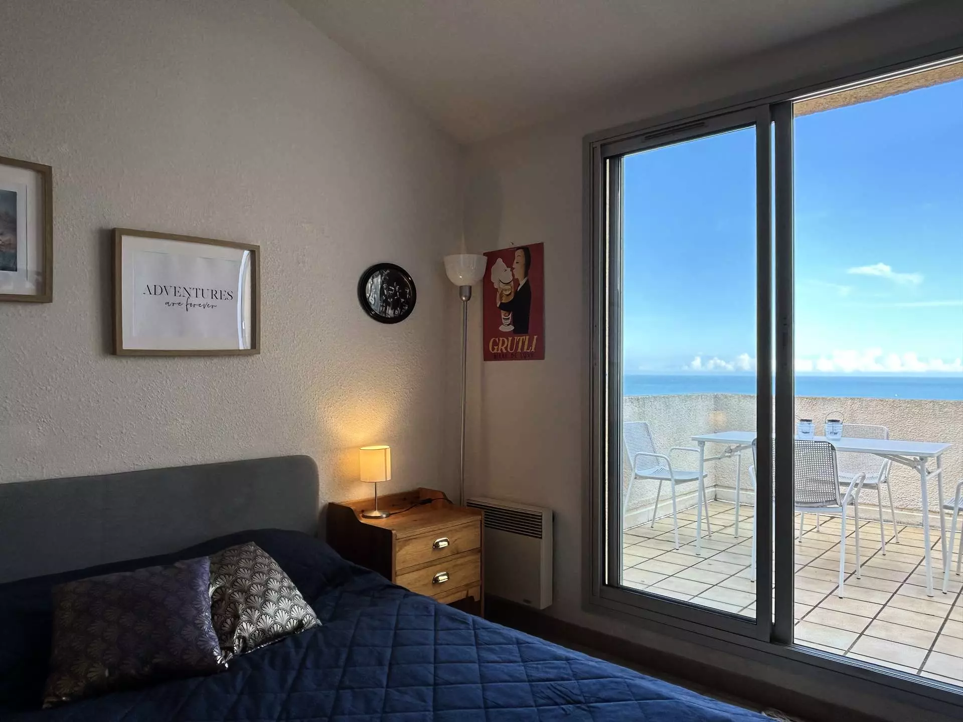 Ce studio se compose d'une pièce principale avec un lit double, d'un coin cuisine, d'une salle d'eau avec WC, ainsi que d'une terrasse offrant une vue mer. Une place de stationnement privative est également à votre disposition. Le logement ne dispose pas de télévision.