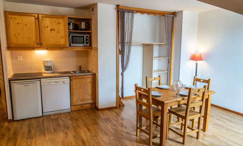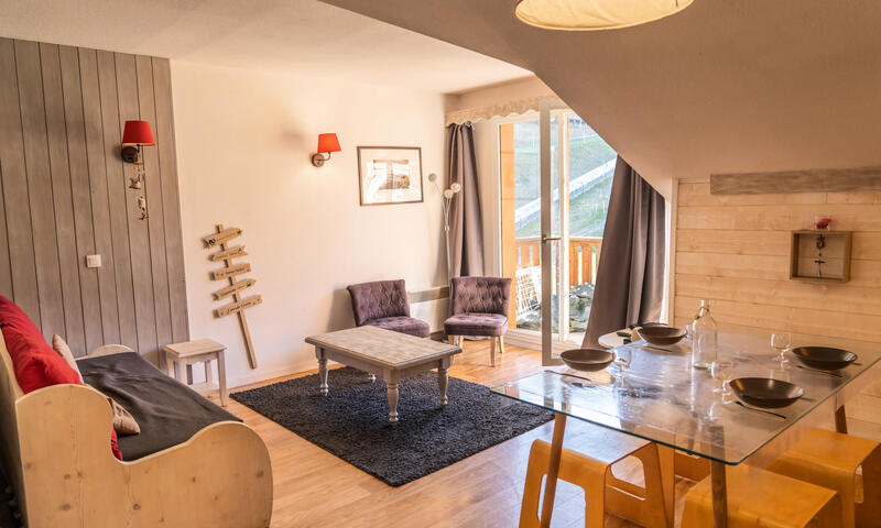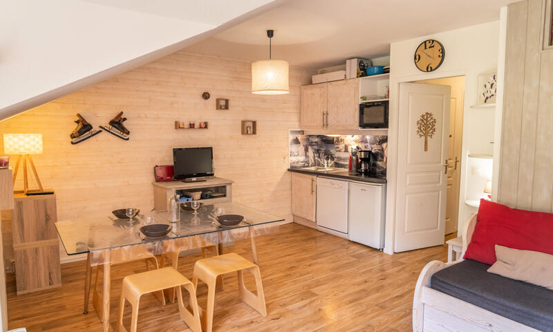 Vous apprécierez sa pièce de vie spacieuse composée d'un coin salon et d'une cuisine équipée, le tout ouvert sur un balcon aménagé, exposé sud-est et offrant une vue sur les pistes.