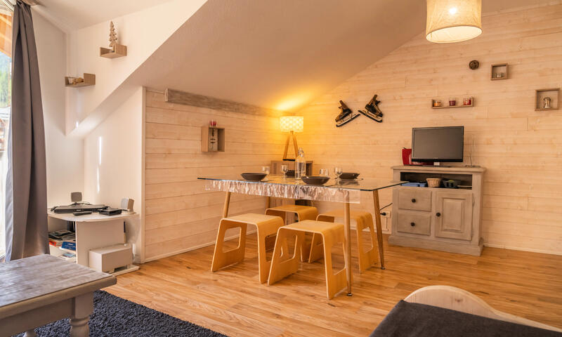 Il se compose d'une entrée avec rangement menant sur le coin nuit, la salle de bain avec baignoire et les WC séparés, une grande pièce à vivre avec télévision, canapé convertible et cuisine équipée, et un balcon avec salon de jardin et vue sur les pistes, le tout dans une ambiance cosy et montagnarde.