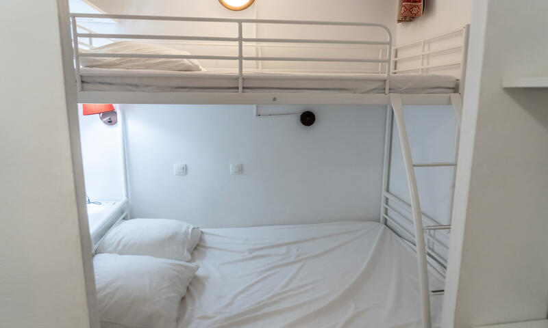 Le canapé du séjour se transforme en couchage double 140 x 190 cm et le coin nuit dispose de 2 lits simples superposés et d'un lit simple 90 x 190 cm.