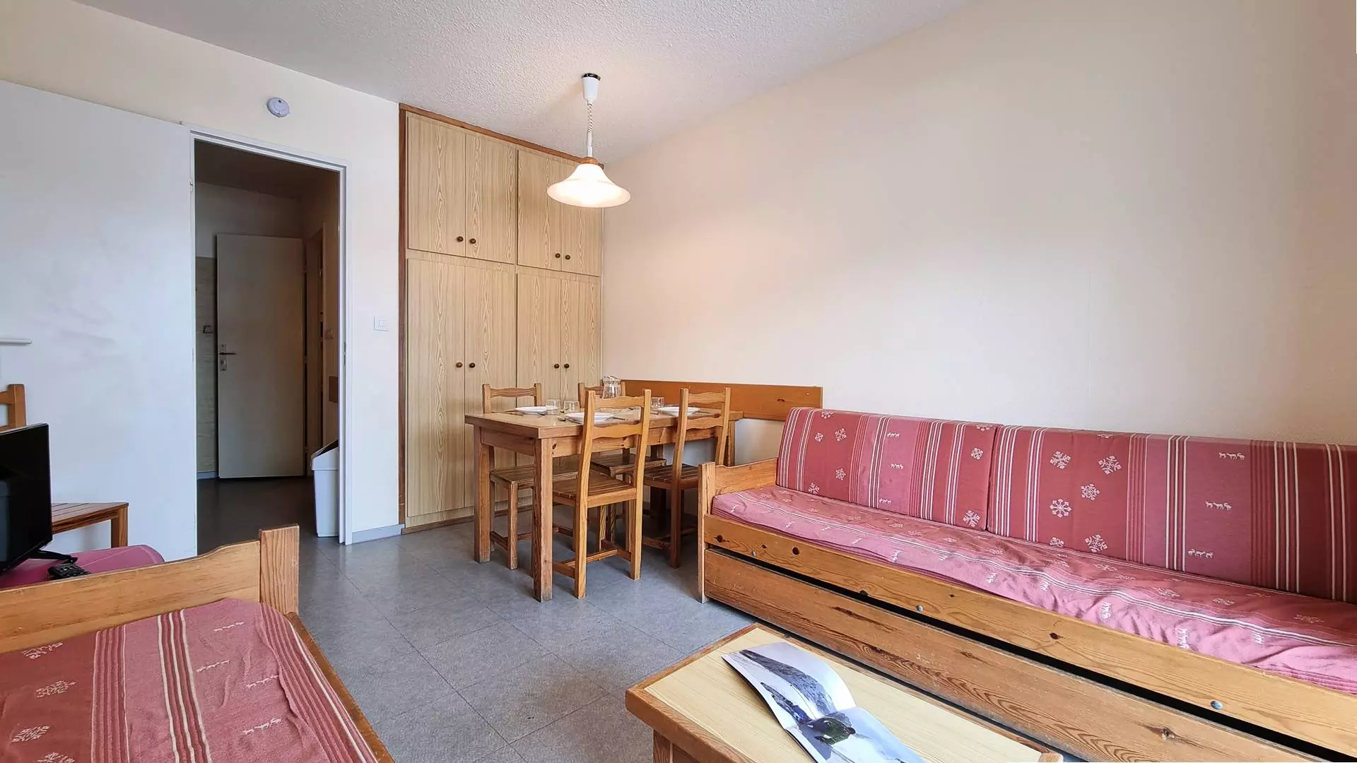 La pièce à vivre dispose d'un lit gigogne et d'un lit simple ainsi qu'une TV.