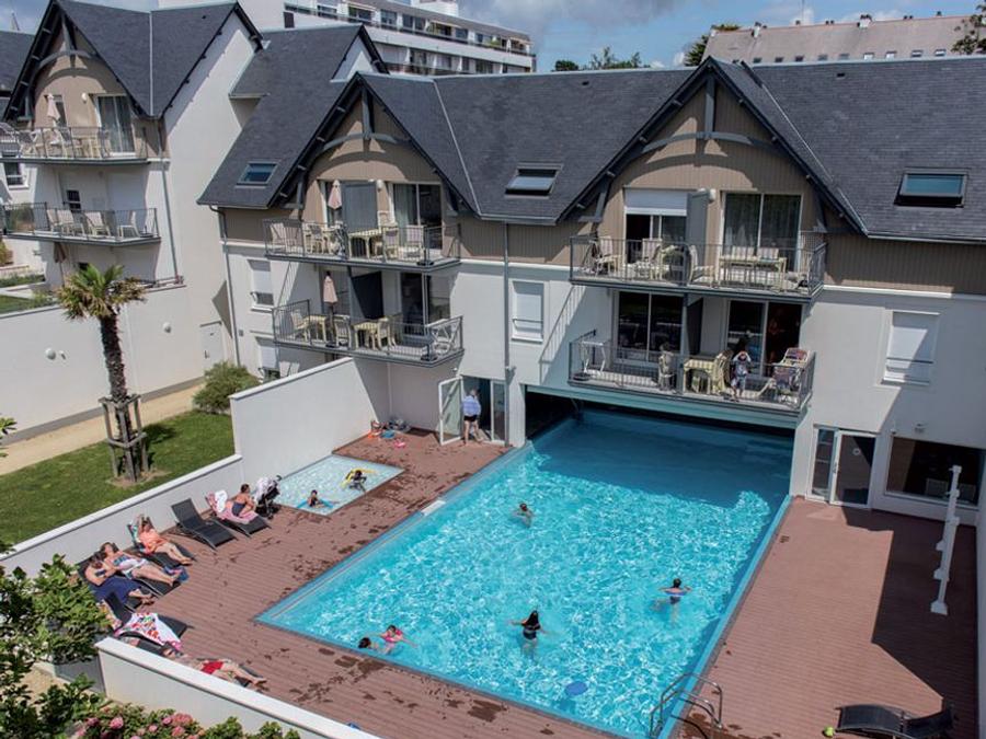 Cette résidence contemporaine du Finistère, au décor inspiré du bois flotté et aux toits en ardoise, propose de spacieux appartements modernes et tout équipés. Profitez d'une piscine semi-couverte et chauffée, ainsi que d'un espace bien-être avec sauna et hammam, pour des moments de détente après une journée bien remplie.Idéalement située à Bénodet, à seulement 50 mètres de la plage du Trez et à 500 mètres du centre-ville, la résidence permet de s'adonner aux plaisirs de la mer : sports nautiques, mini-croisières sur l'Odet, traversées vers les îles environnantes, pêche à pied ou farniente sur le sable.De nombreux équipements sont à disposition : wifi dans chaque appartement, plage équipée de transats, parking extérieur et couvert, local à vélos, laverie et location de vélos pour explorer la région en toute liberté.