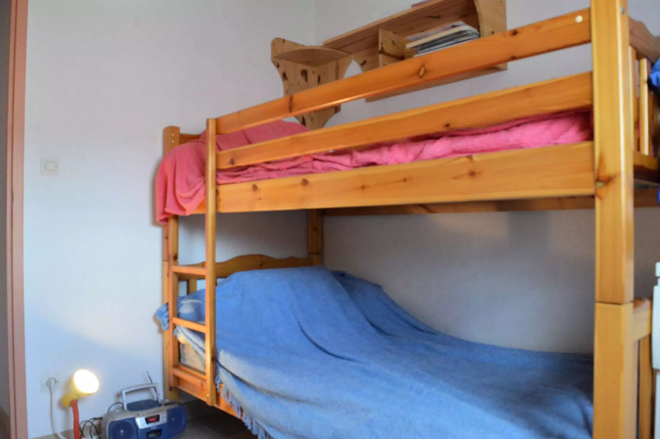 Ce pavillon de vacances à la mer, classée meublée de tourisme est composé au rez-de-chaussée: d'un coin cuisine équipé, d'une salle d'eau et WC séparé, d'un séjour avec canapé convertible 2 places et télévision (sous réserve d'une bonne réception) donnant sur une terrasse. A l'étage vous trouverez une chambre avec un lit 2 places (140*), et une chambre avec un lit superposé (2x90*).