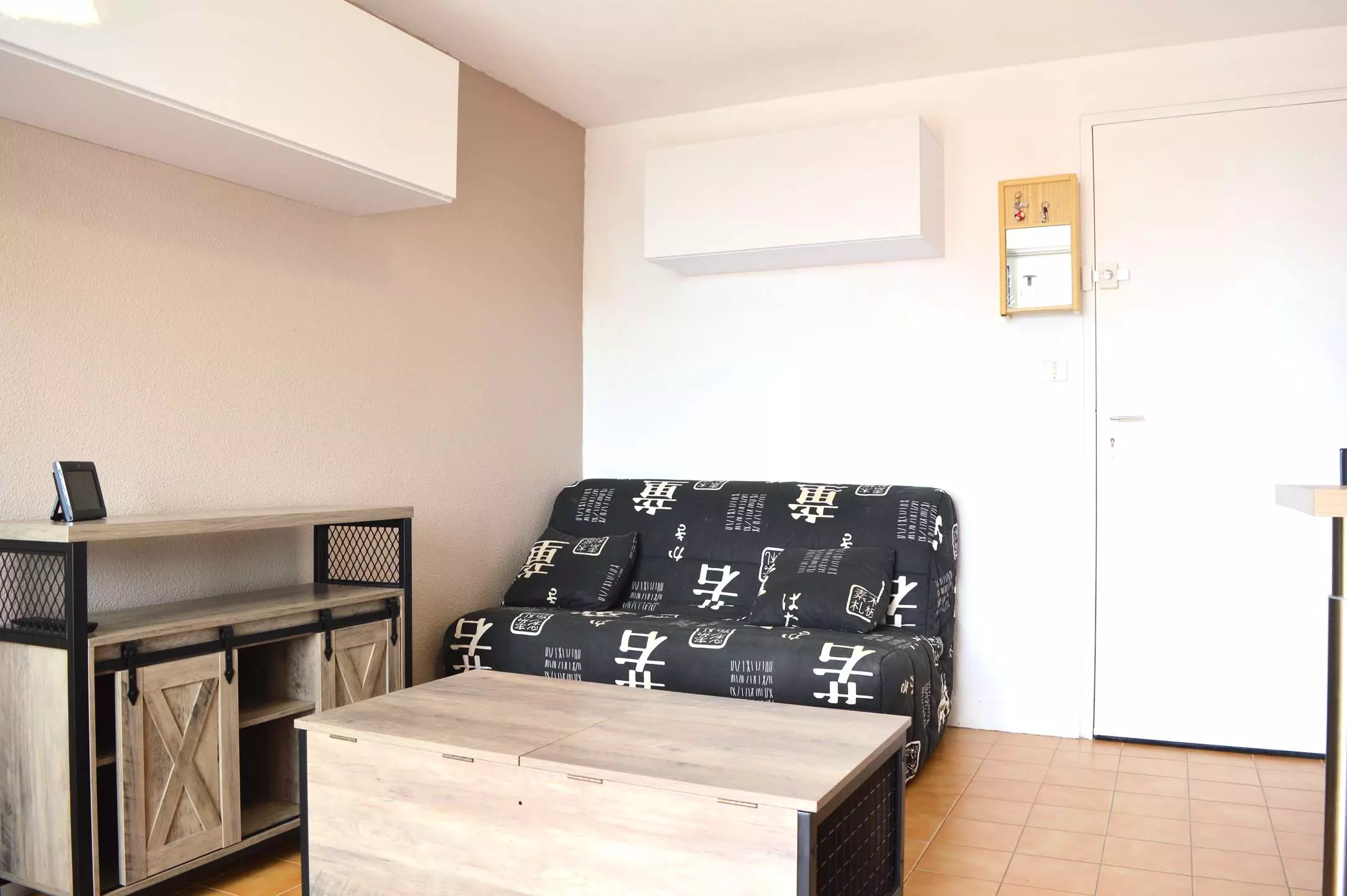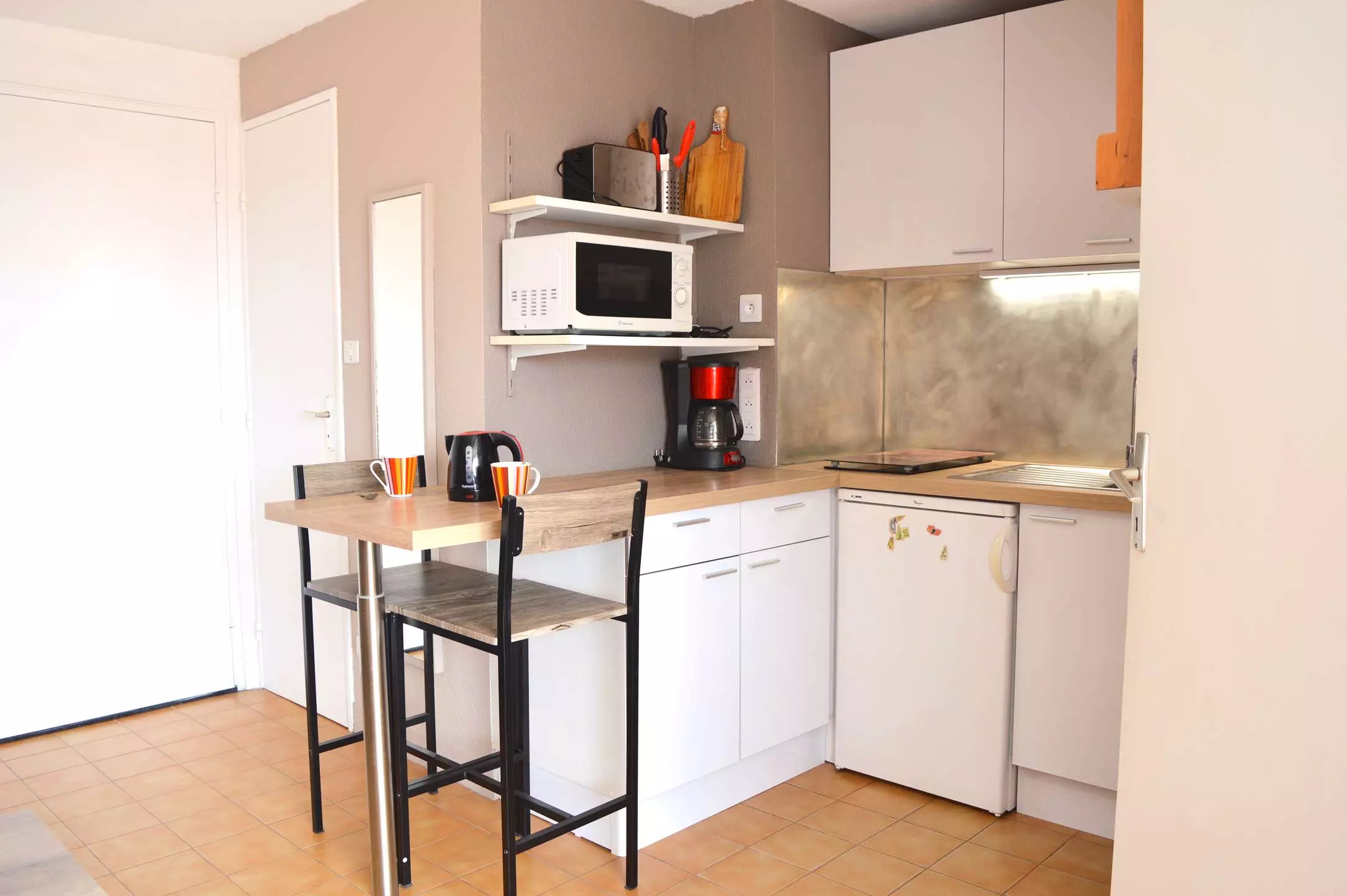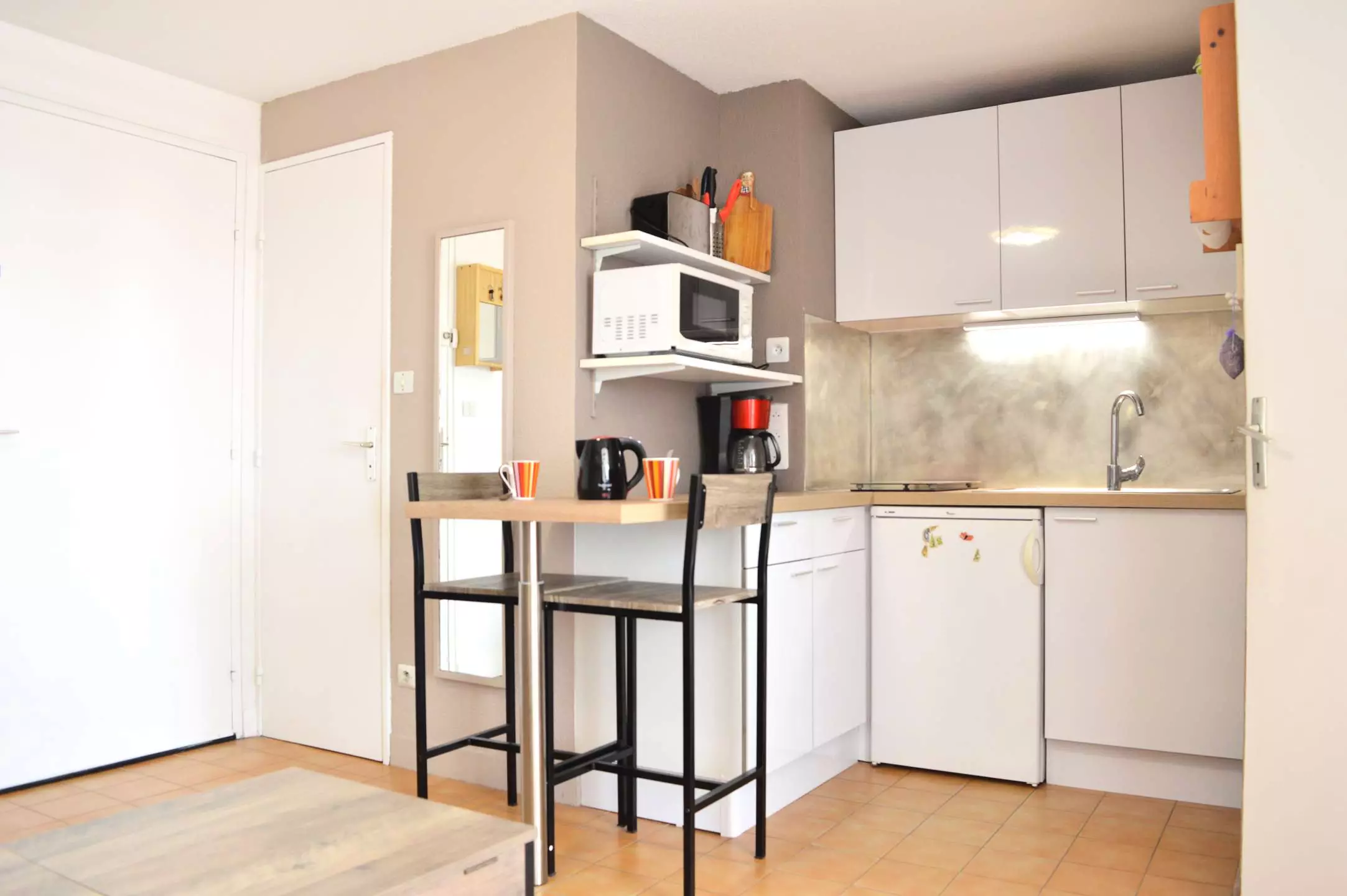 Cette location saisonnière dispose d'un séjour avec canapé convertible 2 places et télévision (sous réserve d'une bonne réception), d'un coin cuisine équipé, d'une chambre avec un lit (140*200) et d'une salle d'eau avec WC.