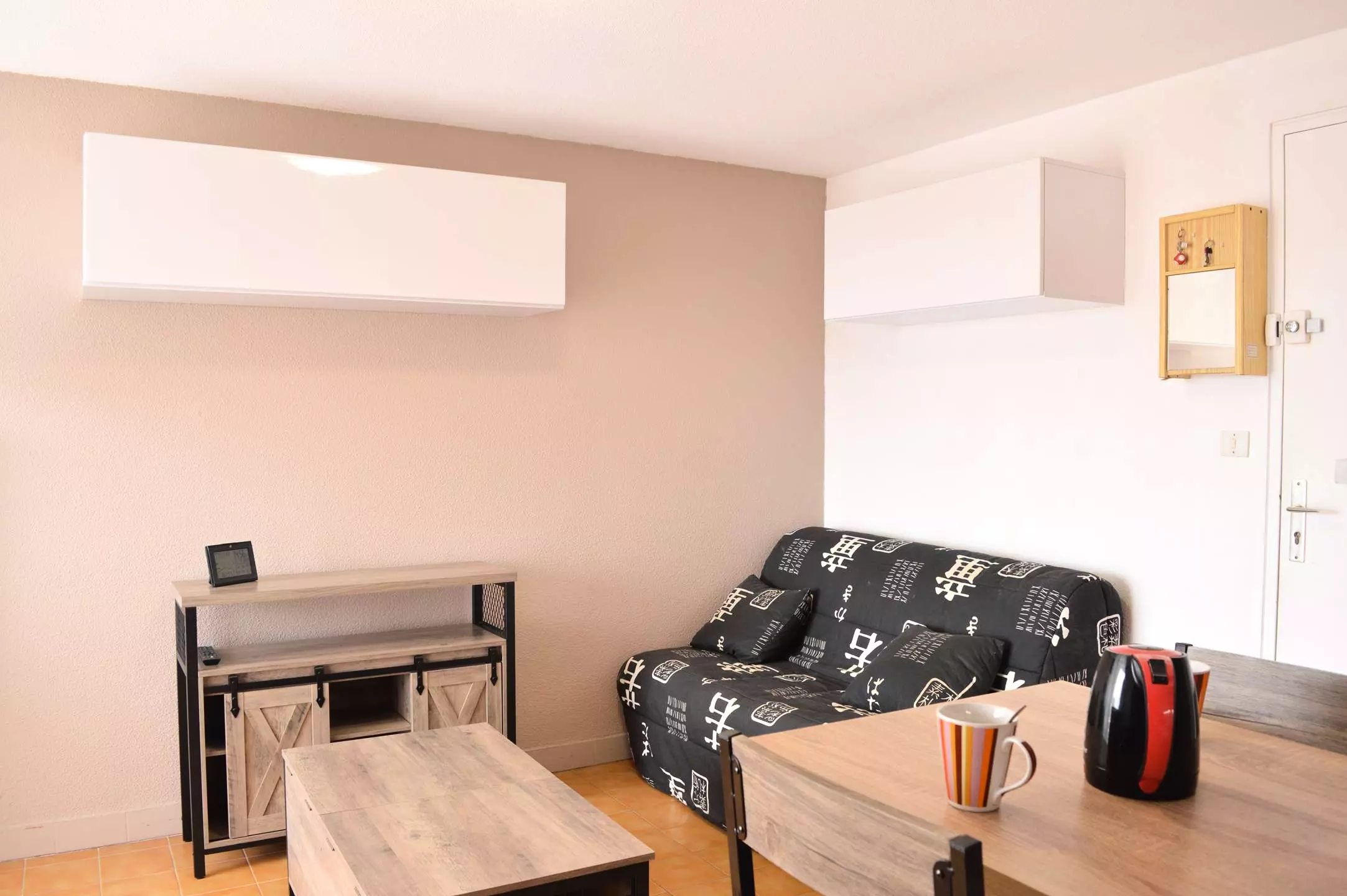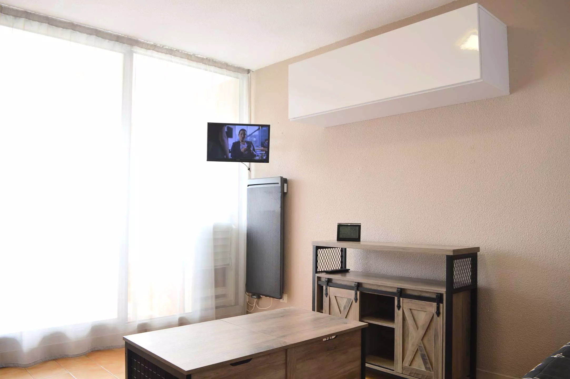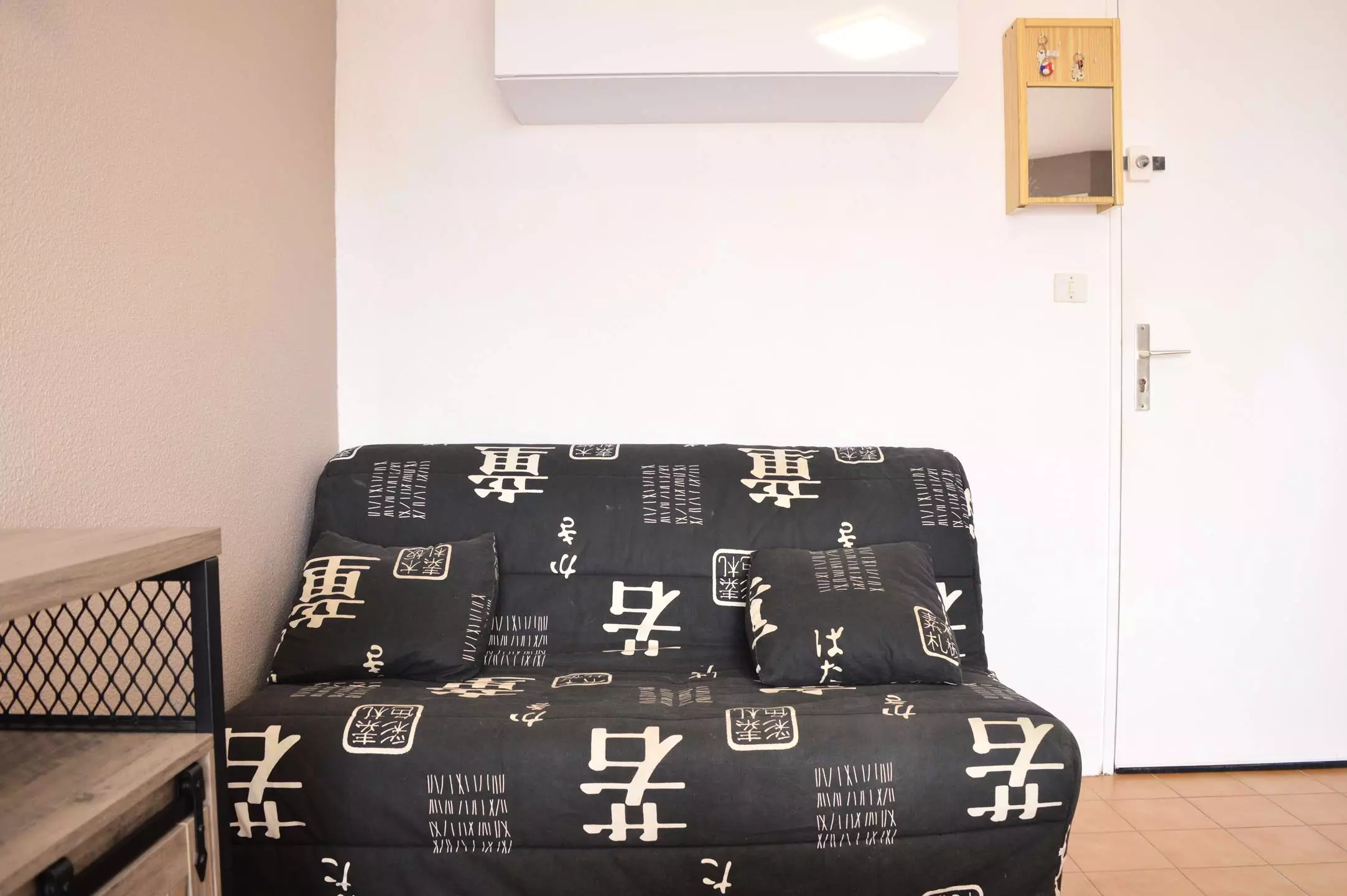 Cette location saisonnière dispose d'un séjour avec canapé convertible 2 places et télévision (sous réserve d'une bonne réception), d'un coin cuisine équipé, d'une chambre avec un lit (140*200) et d'une salle d'eau avec WC.