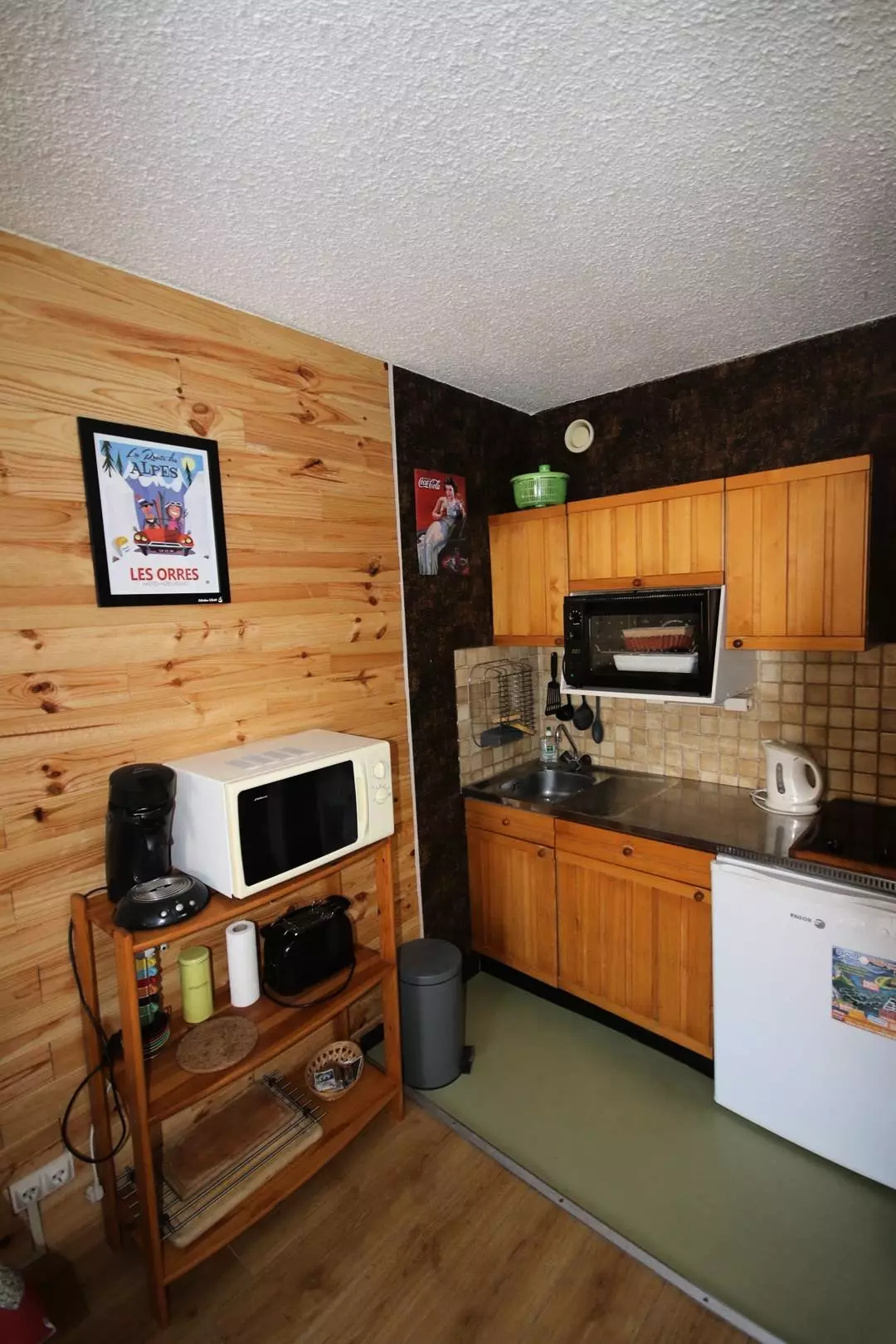 Idéalement situé en coeur de station des Orres 1650 coquet studio 4 personnes qui se compose d'un salon/séjour avec 1 canapé Clic-Clac 2 places, d'un coin cuisine aménagé, d'un coin nuit à l'entrée avec 2 lits superposés une personne, une salle d'eau avec douche et wc.