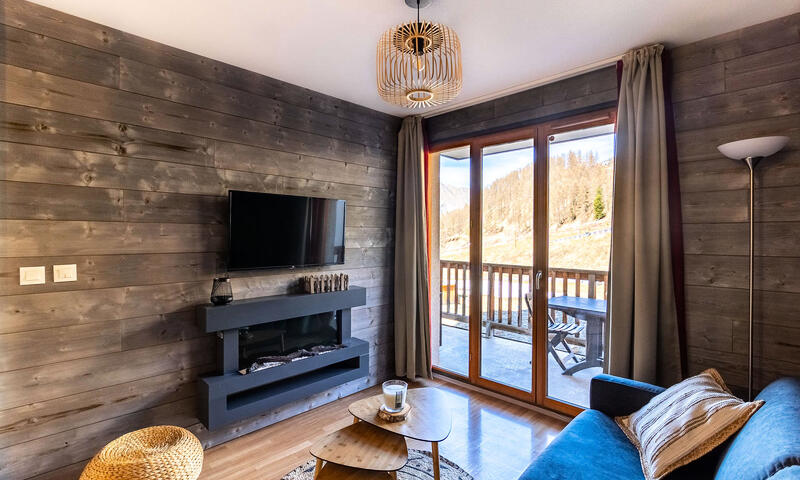 La pièce de vie est composée d'un salon avec canapé et télévision et d'une cuisine moderne et complètement équipée (lave-vaisselle, micro-ondes, cafetière Dolce Gusto...). Vous apprécierez aussi le balcon exposé à l'ouest, qui offre une vue sur la station et les montagnes environnantes.