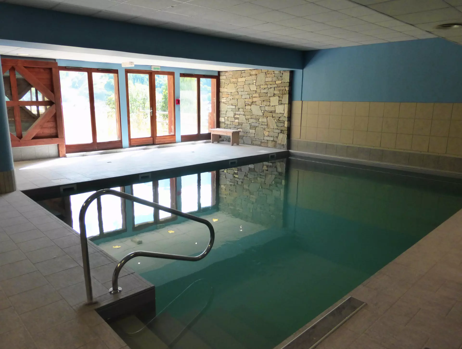 La piscine de la résidence se trouve dans le même bâtiment que l'appartement.
