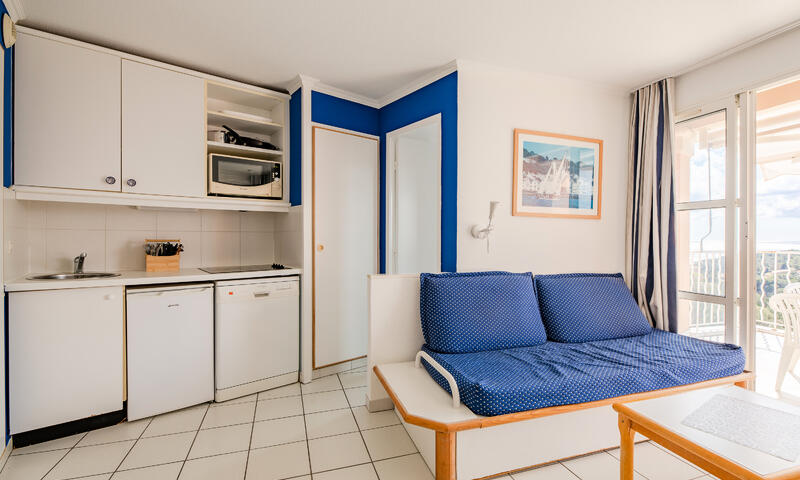Les atouts de votre location : Studio profitant d'une jolie terrasse avec vue mer situé dans une résidence avec piscine en accès libre.