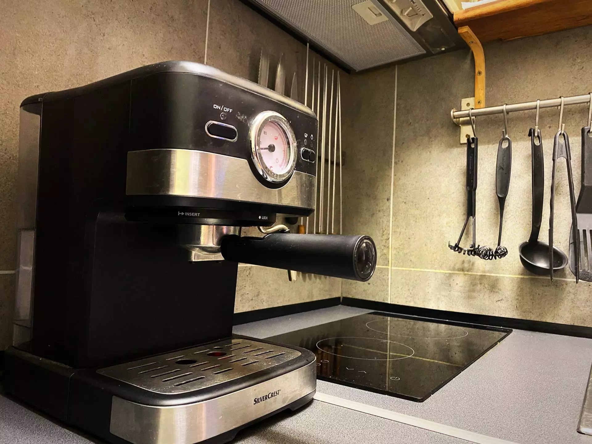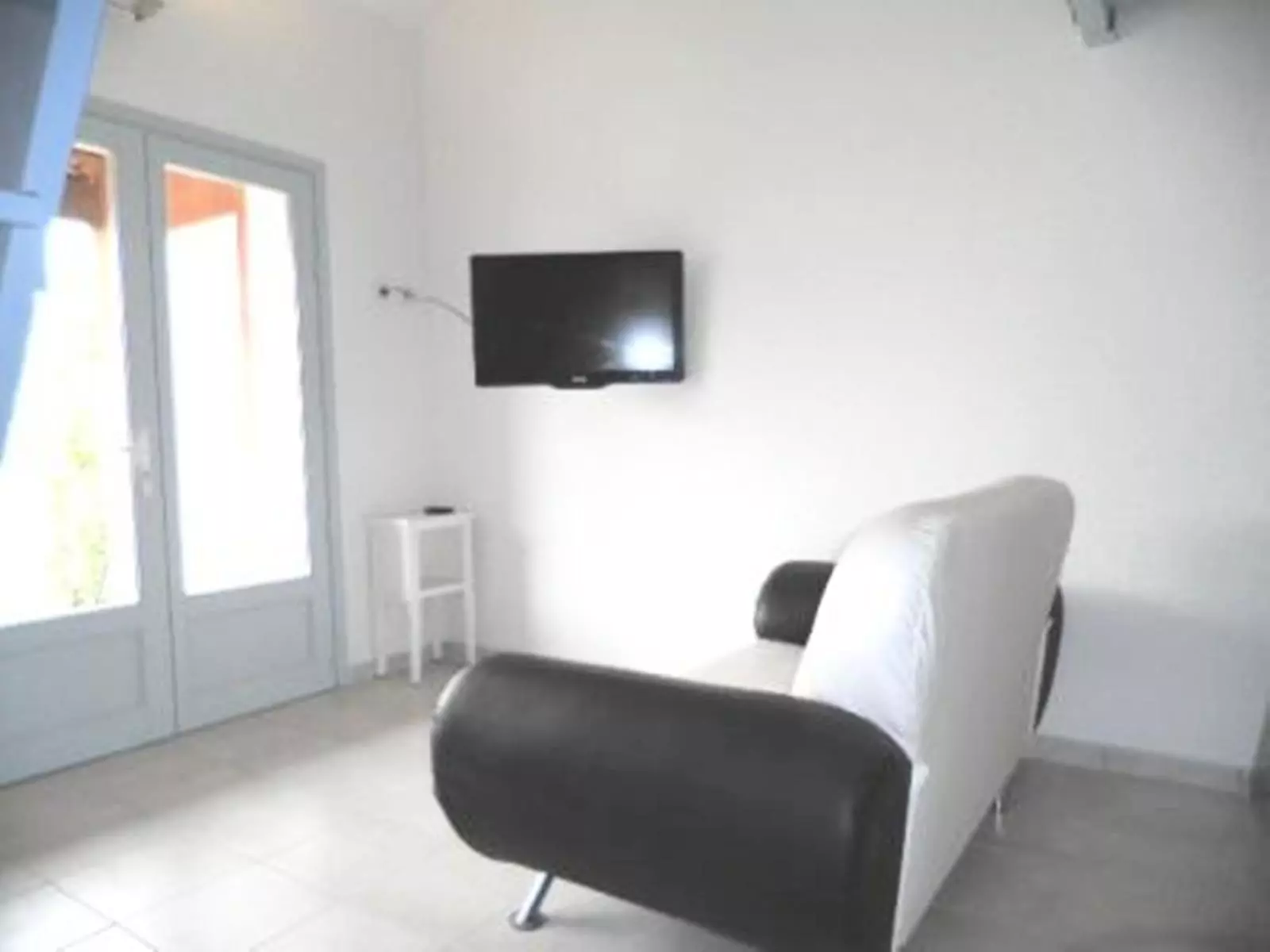 Cette location à la mer est composée en rez de chaussée d'un séjour climatisé avec canapé convertible, télévision, véranda et un espace kitchenette (plaques 2 feux, microonde, cafetière espresso, grille pain).