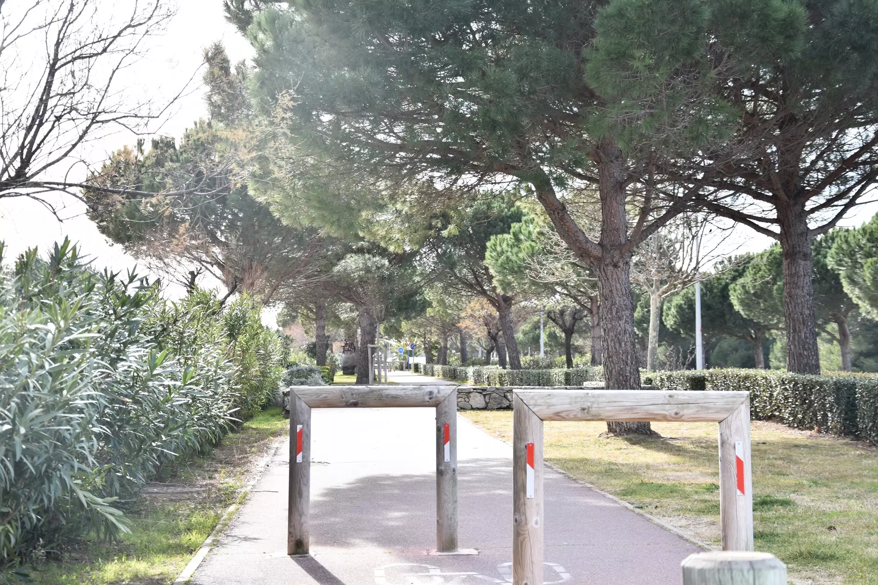 Résidence composée de pavillons mitoyens, entrée avec barrière de sécurité.
