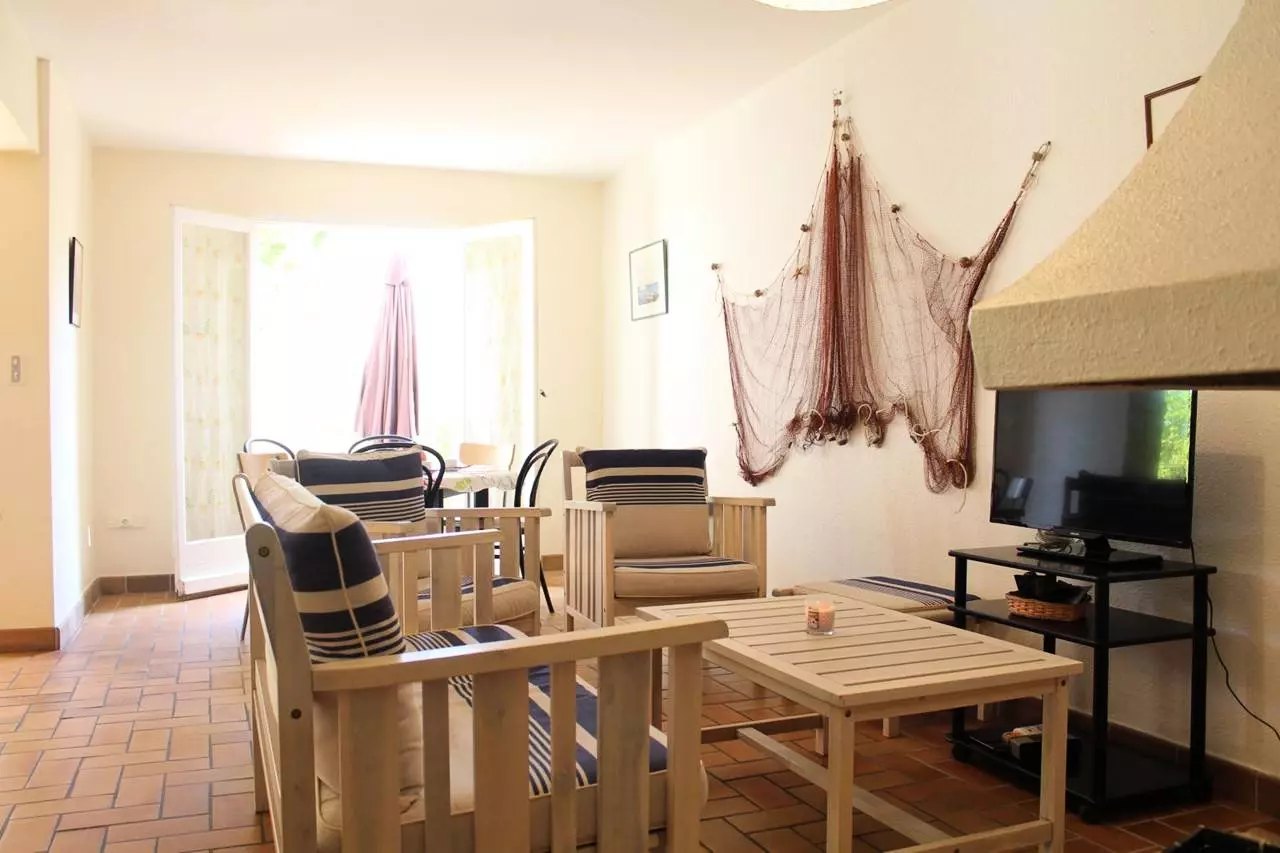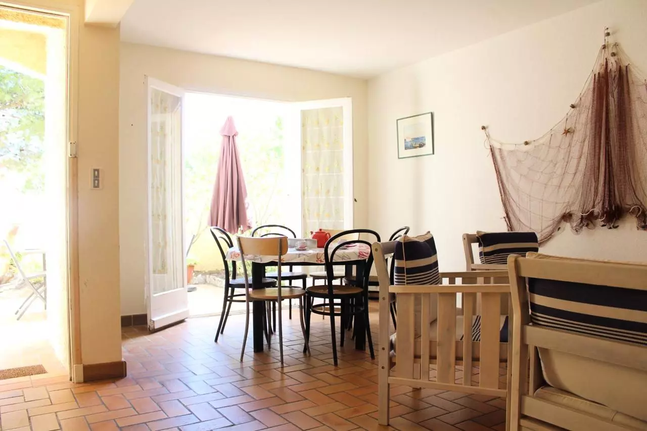 Pavillon mitoyen situé à 150 m de la plage et en face du centre commercial de la plage.