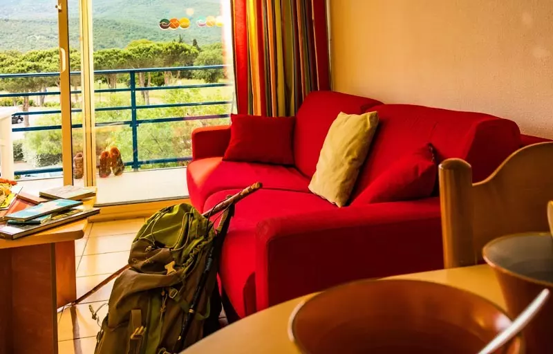 Séjour avec canapé convertible pour 2 personnes.