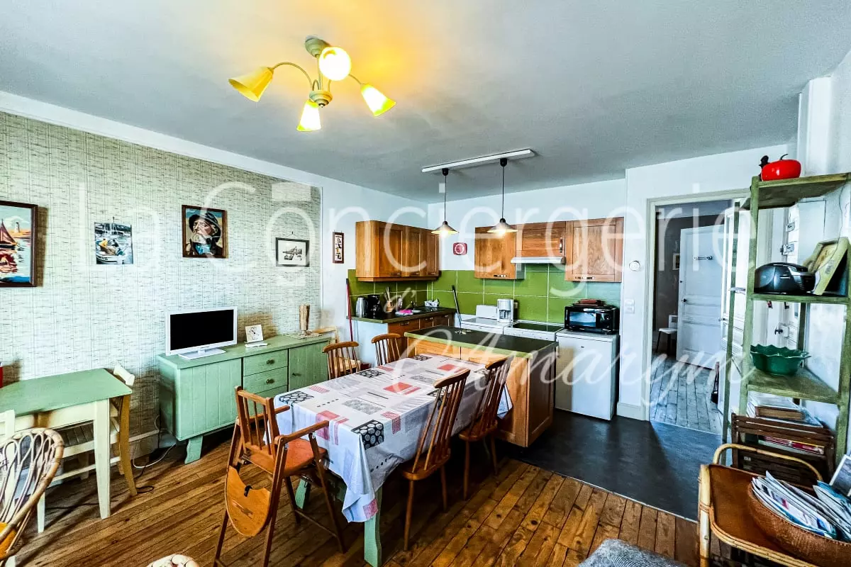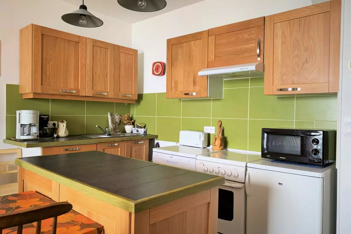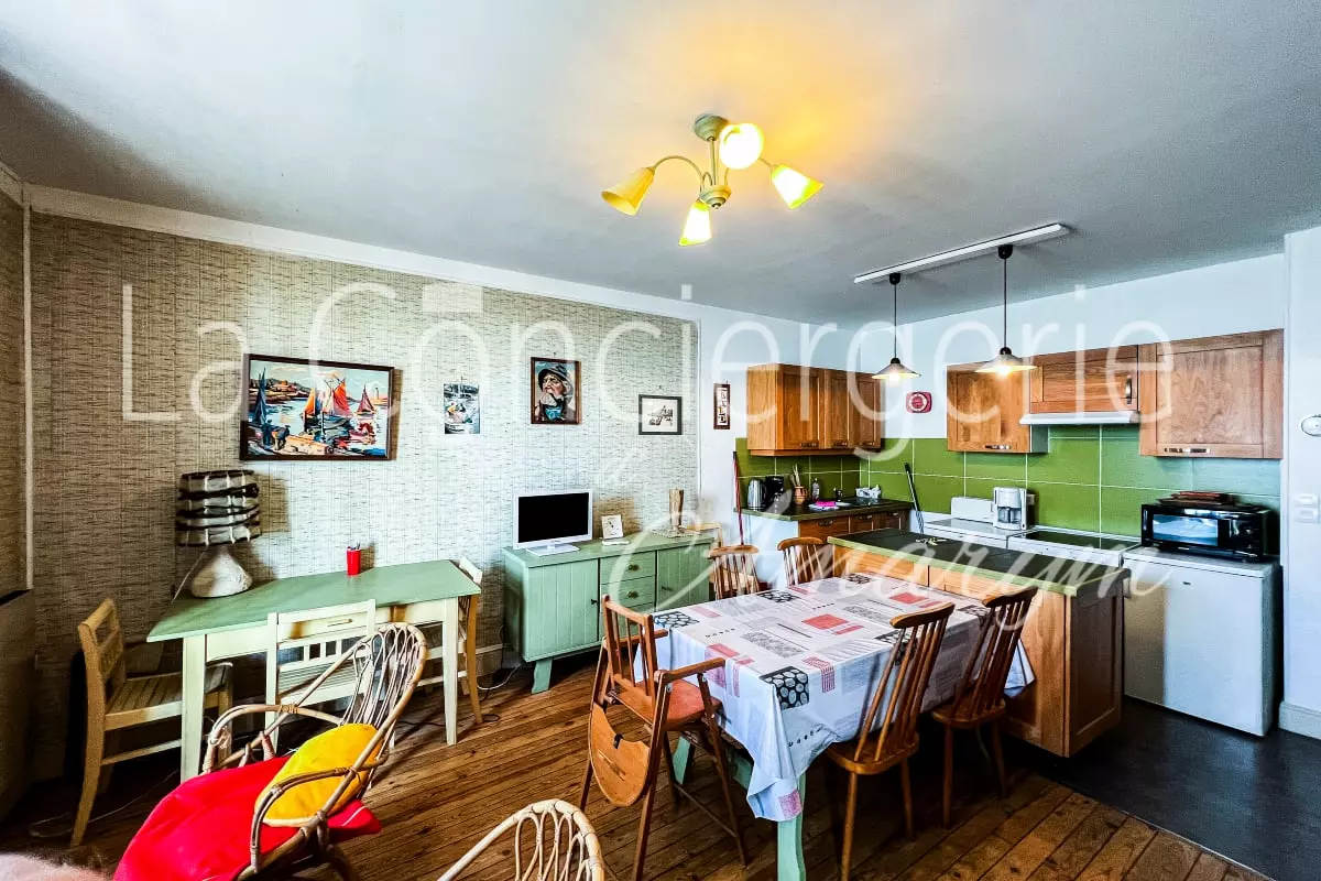 Profitez d’une cuisine aménagée et équipée avec un espace repas convivial, ouverte sur un séjour lumineux.