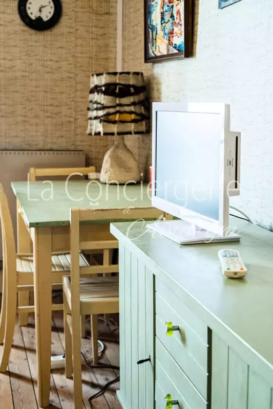 Le séjour s’ouvre sur un balcon offrant une vue imprenable sur l’esplanade de Mers-les-Bains, parfait pour vos moments de détente, apéritifs ou lectures face à l’océan.