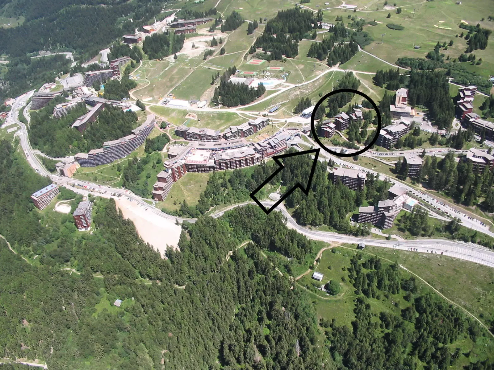 Elle est située dans le village de Charmettoger, entre les résidences Mirantin 1 et 3, à 20 mètres de la piste bleue "Charmettoger" et à 50 mètres du télécabine "Transarc".