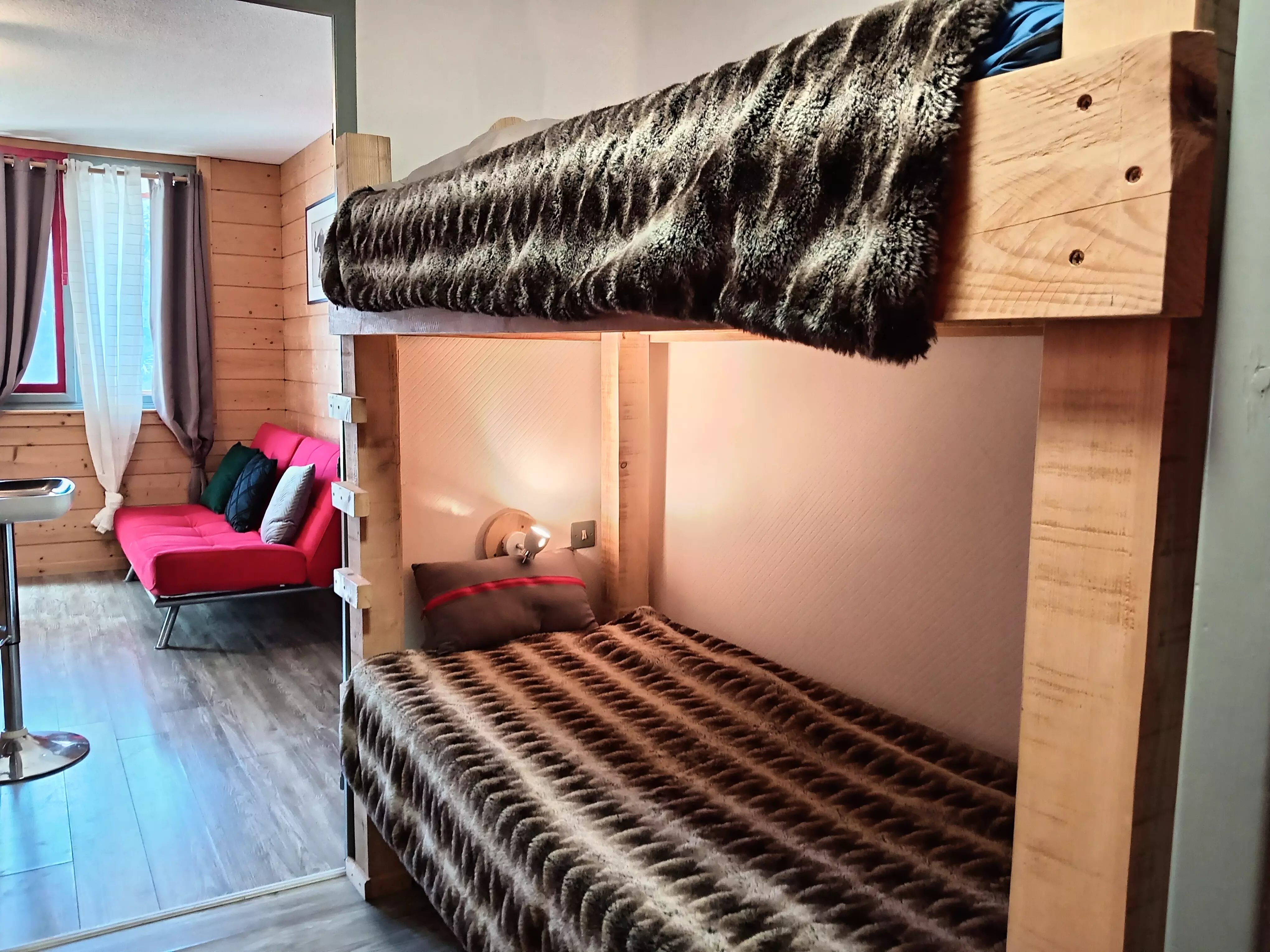 - Coin Cabine accès sans porte : 1 lits superposés (2 couchages)