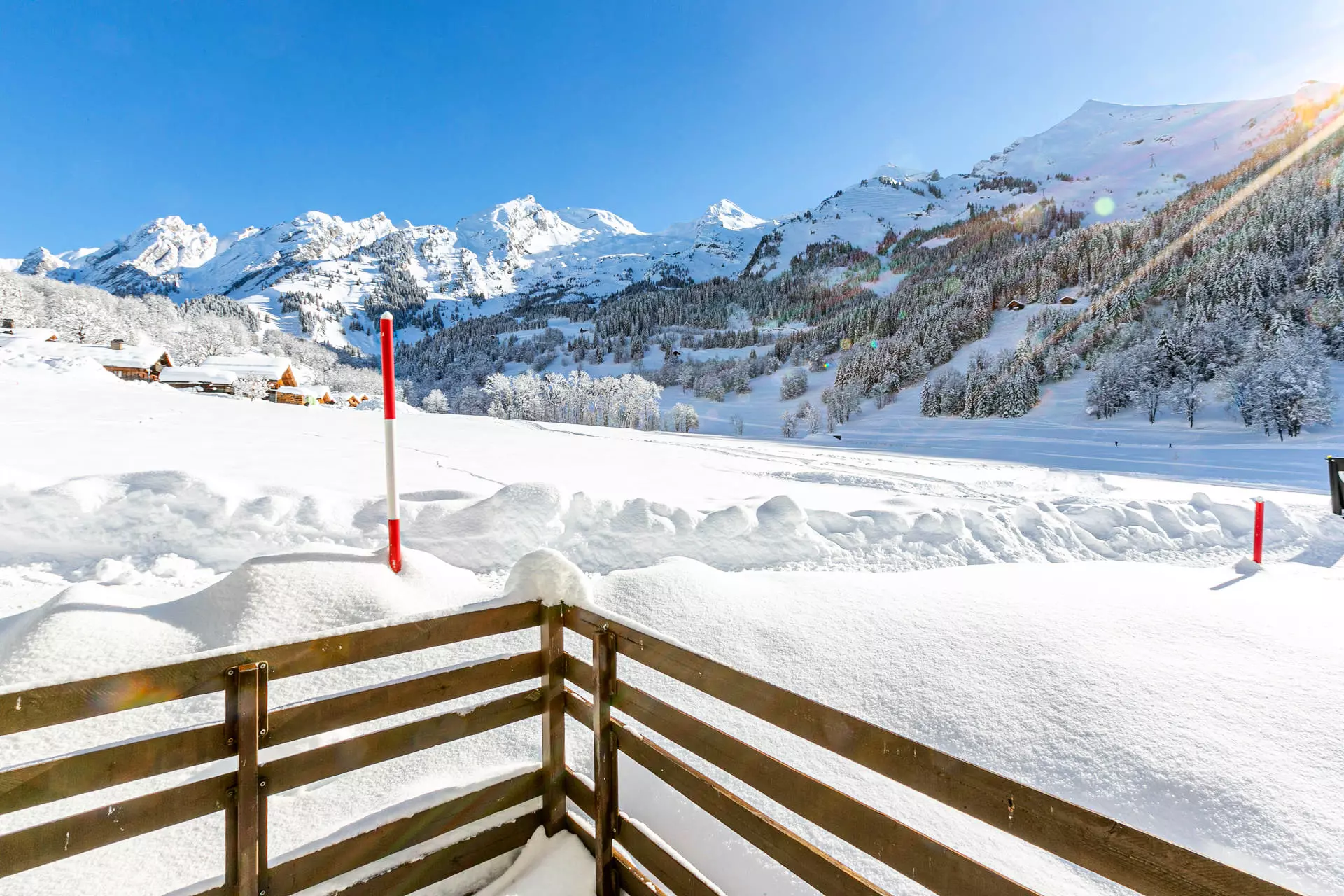 Petite copropriété avec une très belle vue sur la chaîne des Aravis. Située à 2.2 km du village, à 50 m de la piste de liaison du var (selon enneigement), 1,1 km de pistes de ski de fond. 100m d'un arrêt de navettes.