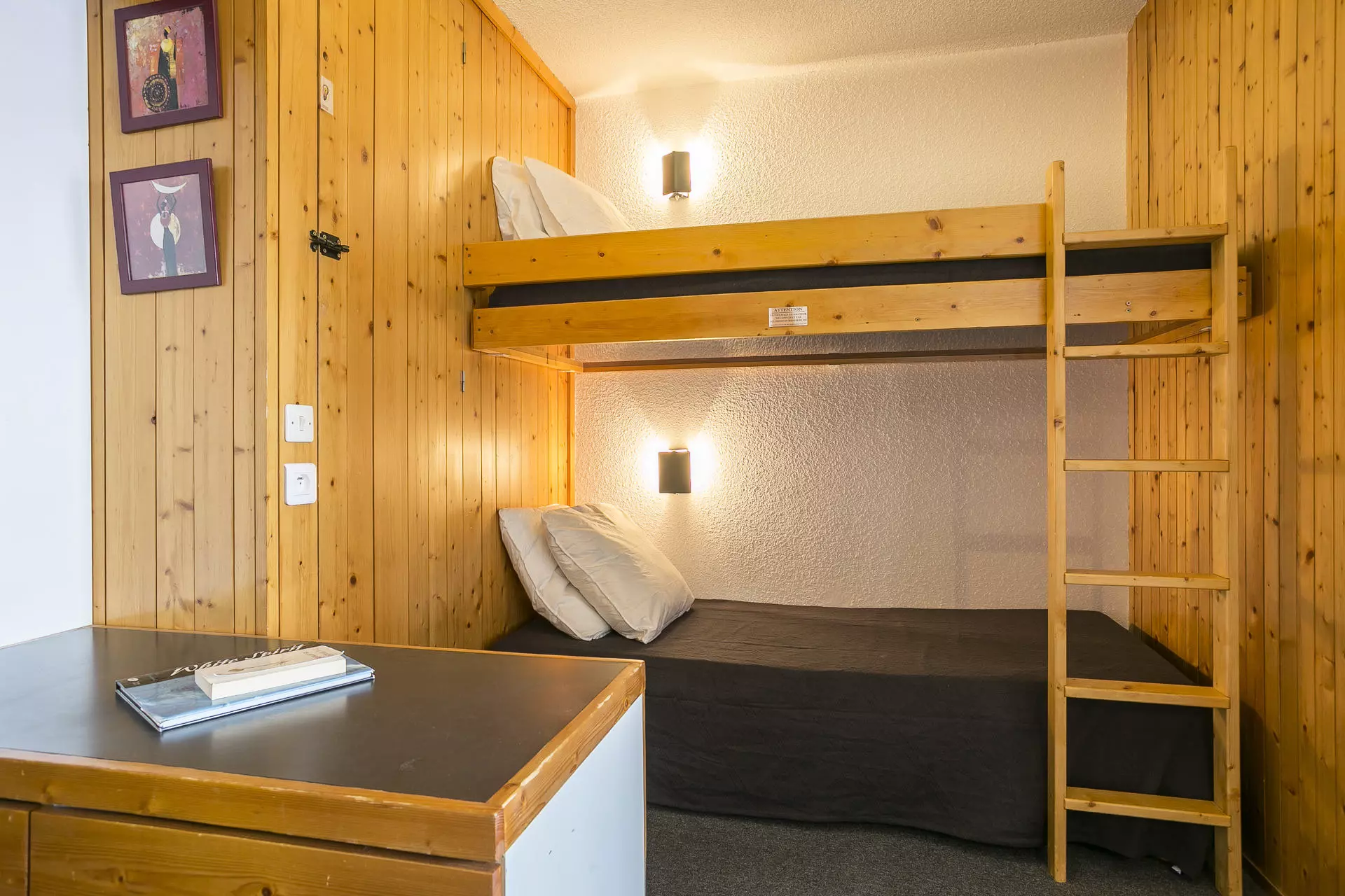Coin cabine à côté du séjour avec 2 lits superposés en 80 cm (le couchage en hauteur ne convient pas aux enfants de -6 ans )