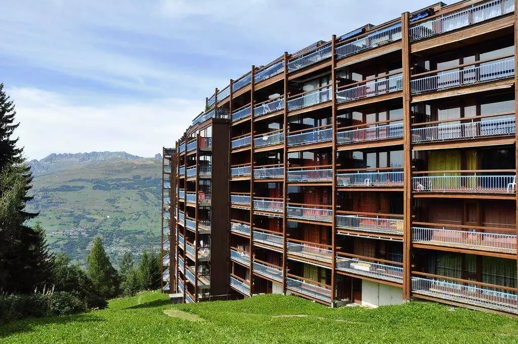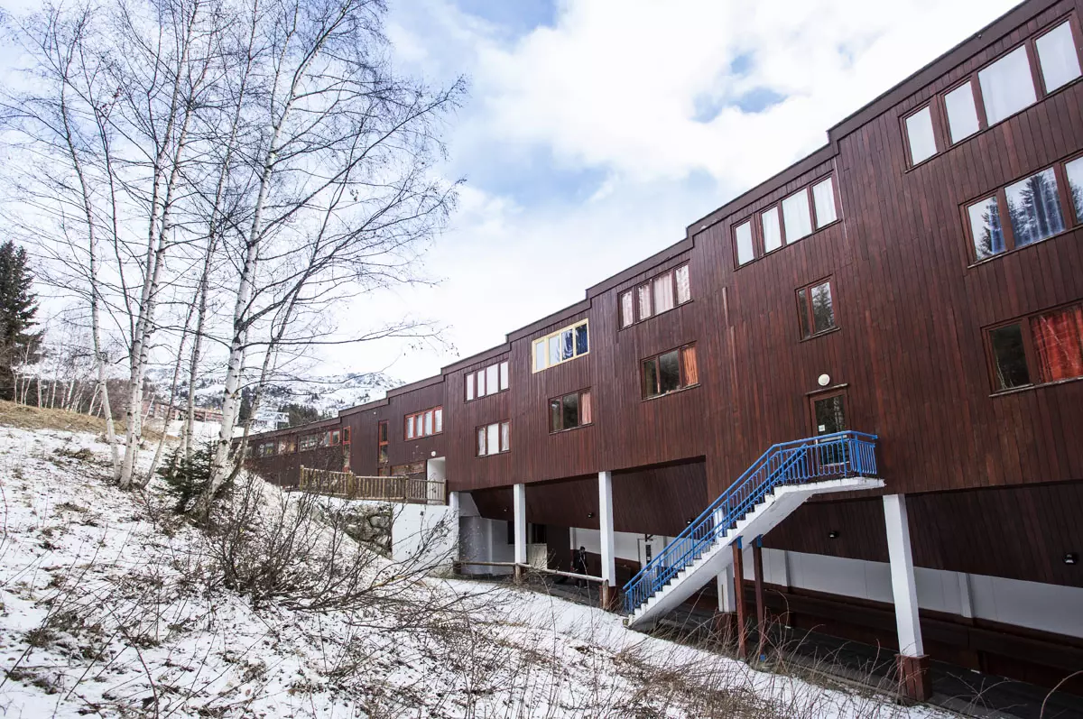 Batîment avec 5 entrées, l'entrée 1 la plus proche du front de neige, la plus haute