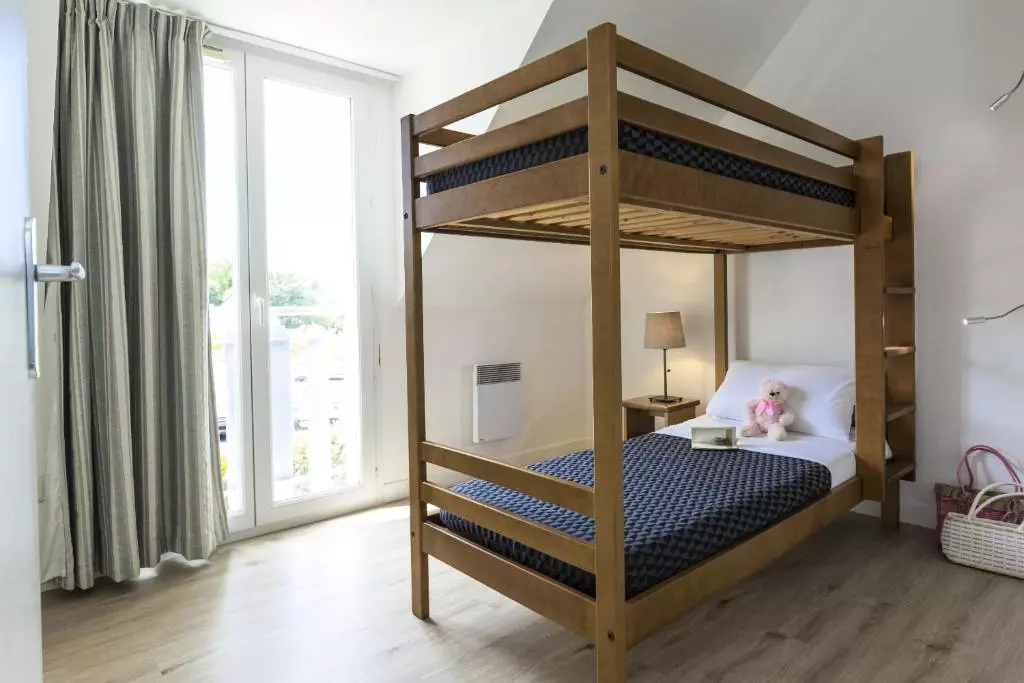 Chambre avec lit double et chambre avec 2 lits superposés.