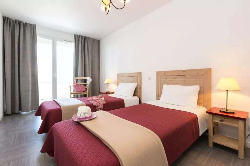 Chambre avec lit double et chambre avec 2 lits simples, lits superposés ou lit double.