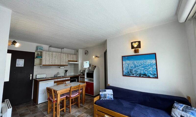Dans une résidence de standing avec ascenseur, séjour avec canapé, TV donnant sur un balcon exposition est, kitchenette équipée: frigo, 2 plaques vitrocéramiques, mini four et lave vaisselle.