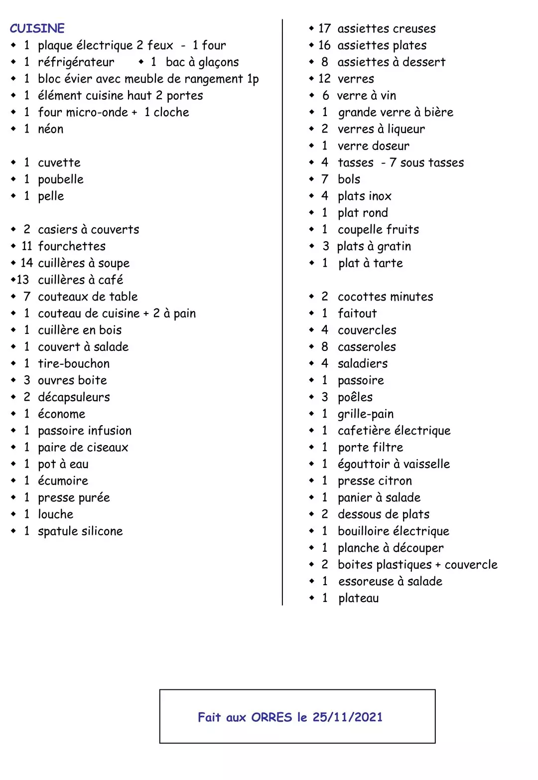 Nombre de pièces : 1