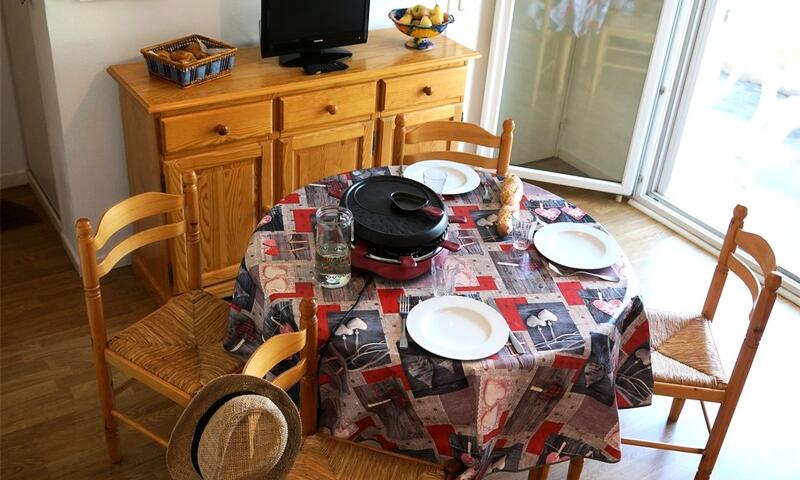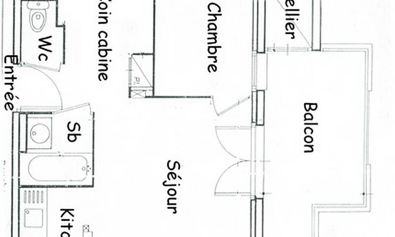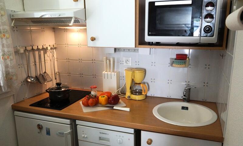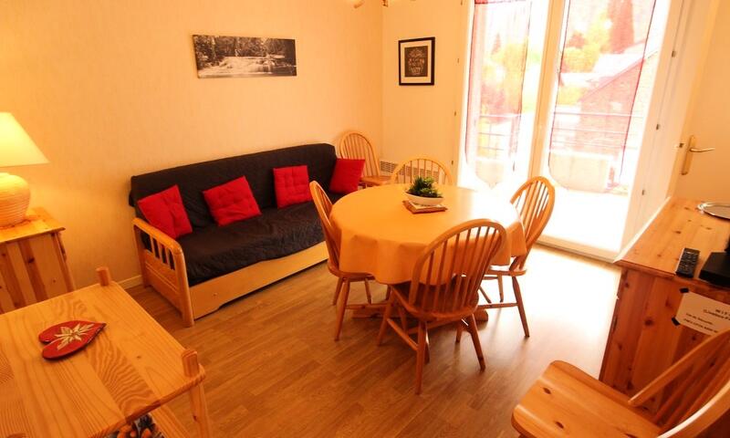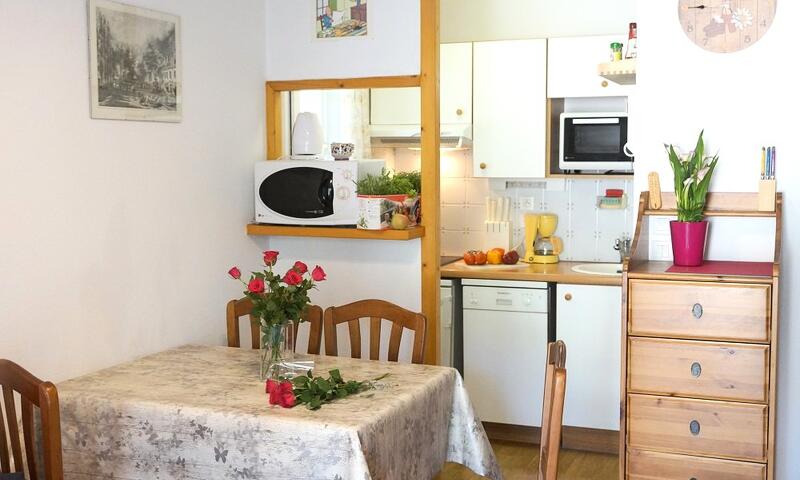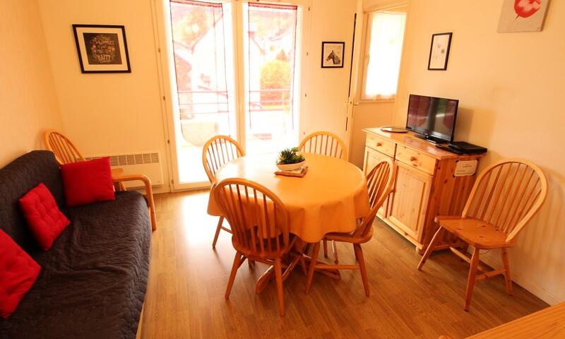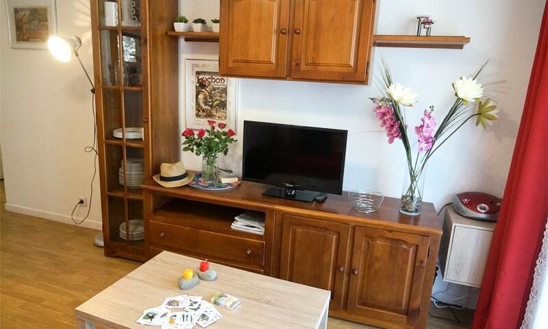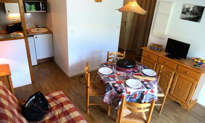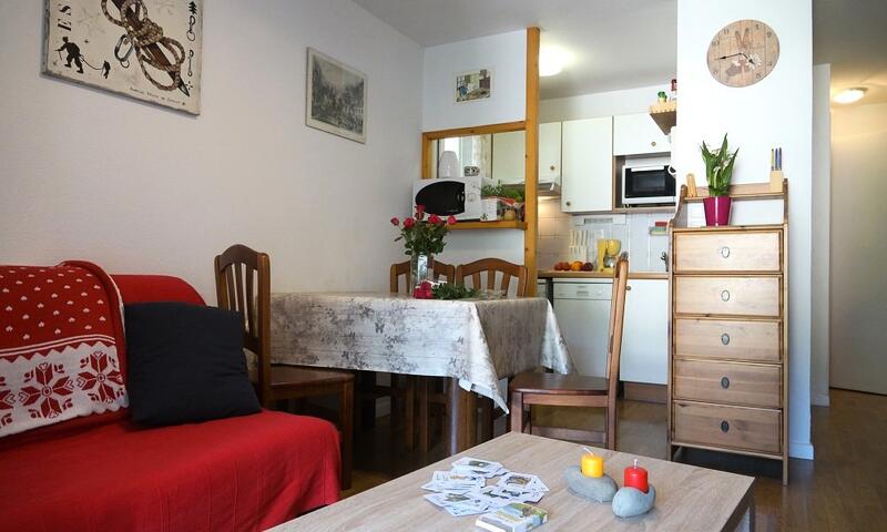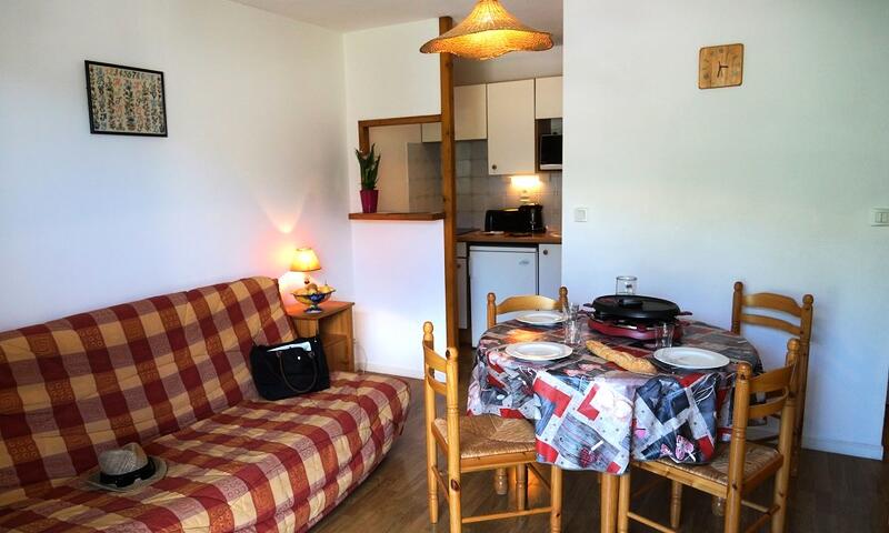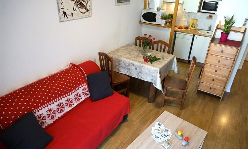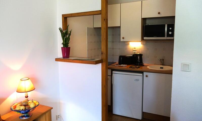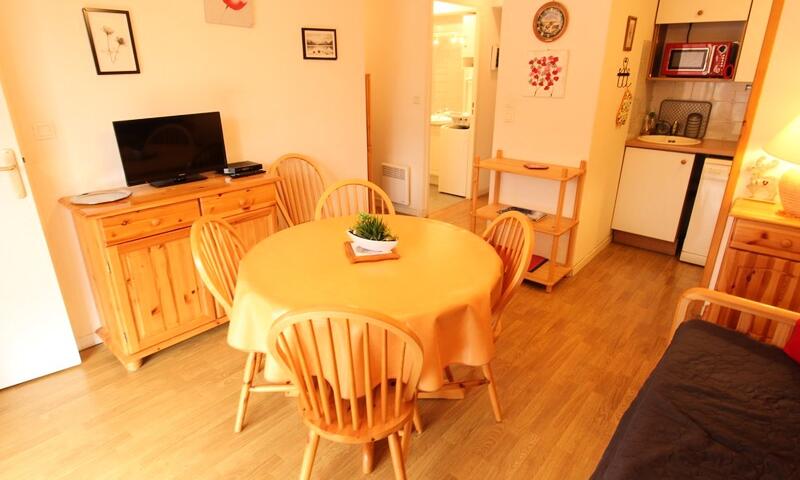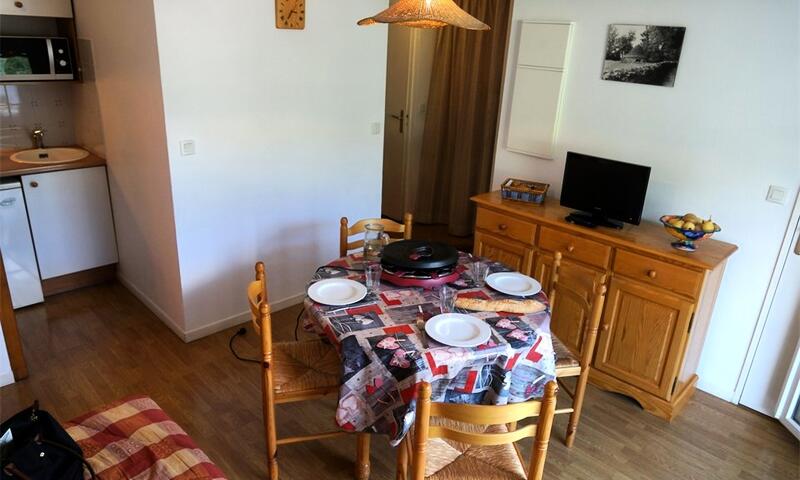 Cet appartement d'environ 30 m² comprend un séjour-kitchenette équipée (micro-ondes - plaque vitro céramique - bouilloire - grille-pain) avec canapé, mobilier pin, téléviseur couleur, ouvrant sur un balcon de 8,50m² exposé est avec vue sur la montagne, une chambre avec un lit deux personnes et meuble tour de lit, un coin nuit avec deux lits superposés. salle de bains et wc séparés.