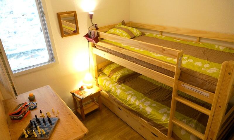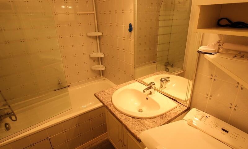 Cet appartement tout confort d'environ 30 m² comprend un séjour-kitchenette équipée (micro-ondes, four, service raclette, lave-vaisselle) avec canapé, mobilier pin, téléviseur, ouvrant sur un balcon de 8,50m² exposé est avec vue sur la montagne, une chambre avec un lit deux personnes et meuble tour de lit, un coin nuit avec deux lits superposés. salle de bains lave-linge et wc séparés.