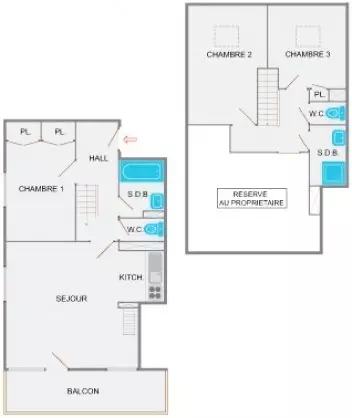 Cet appartement situé au 1er étage, sans ascenseur, se compose d'un séjour avec un coin salon, donnant sur un balcon sud, une cuisine équipée d'un lave-vaisselle, une chambre avec un lit 2 personnes, une chambre avec deux lits une personne + un lit tiroir 1 personne, une chambre avec 2 lits superposés , 1 salle de bains avec lave-linge et une salle d'eau, 2 WC indépendants.