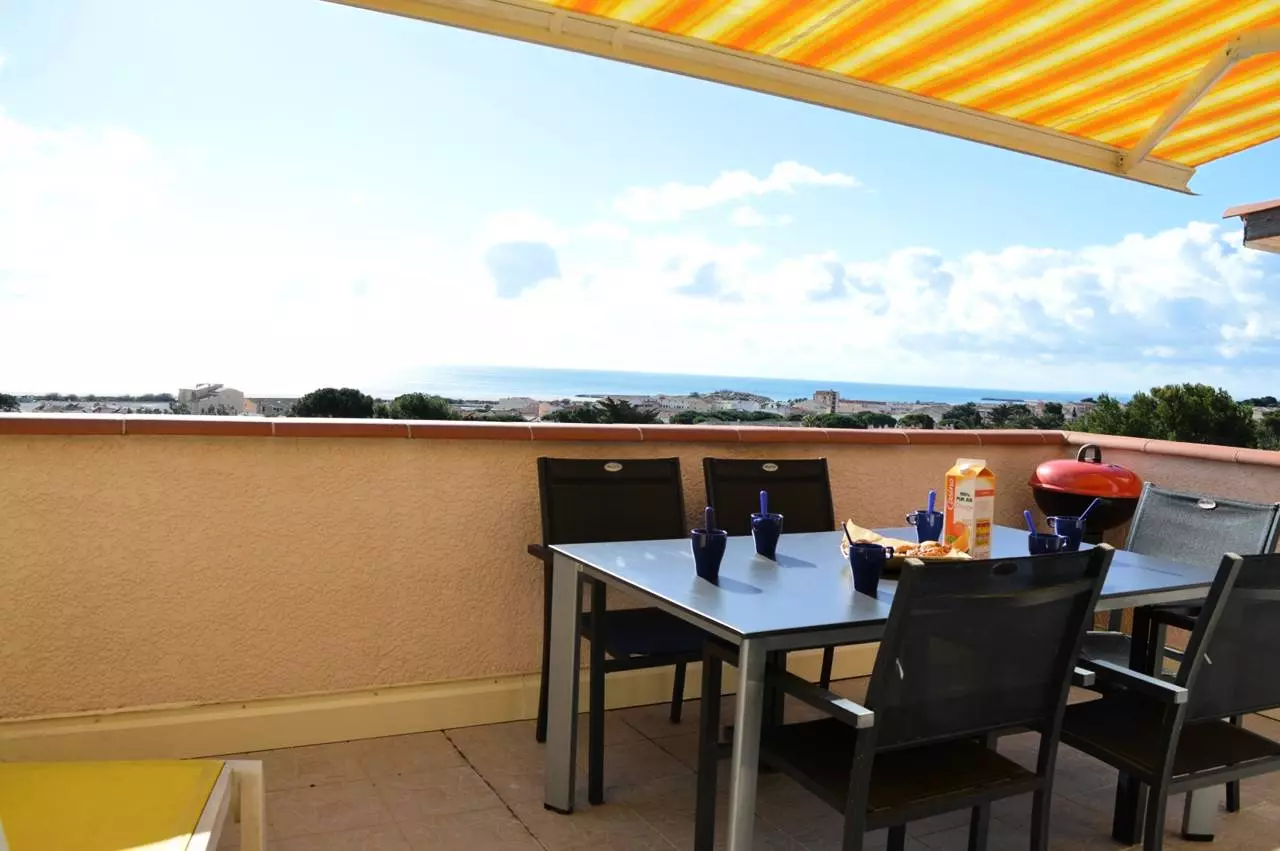 Les Plus de cet hébergement de vacances : vue imprenable sur la mer, terrasse avec salon de jardin, petite cour sur le devant, pavillon climatisé et parking privé.