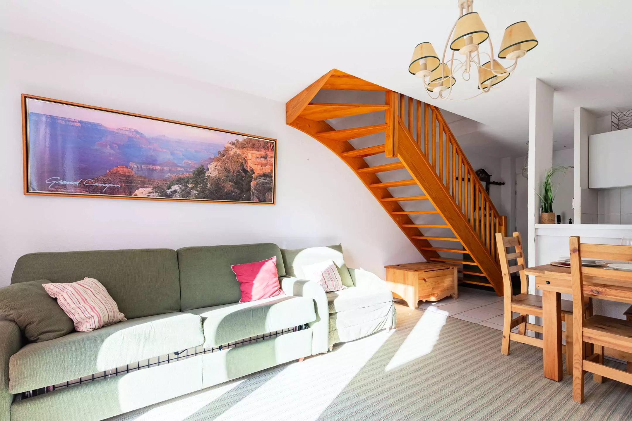 Le séjour peut également accueillir un lit d'appoint si besoin. La cuisine entièrement équipée vous permet de préparer facilement vos repas durant votre séjour.
