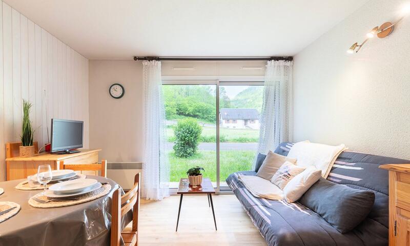 Une grande baie vitrée orientée plein sud inonde le salon de lumière naturelle et donne accès à une petite terrasse ensoleillée, parfaite pour vos moments de détente après une journée en montagne.