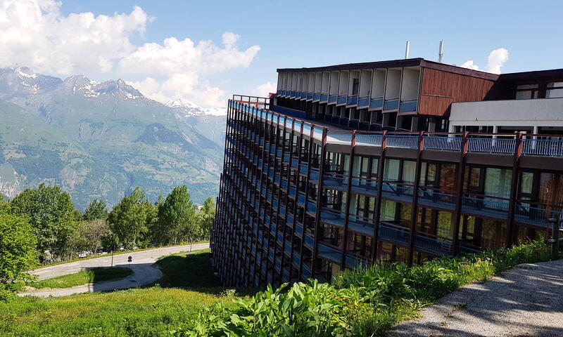 Ce studio de 30m² pouvant accueillir jusqu'à 5 personnes est situé au 8ème étage avec ascenseur de la résidence Pierra Menta, 2ème étage vu de l'extérieur.