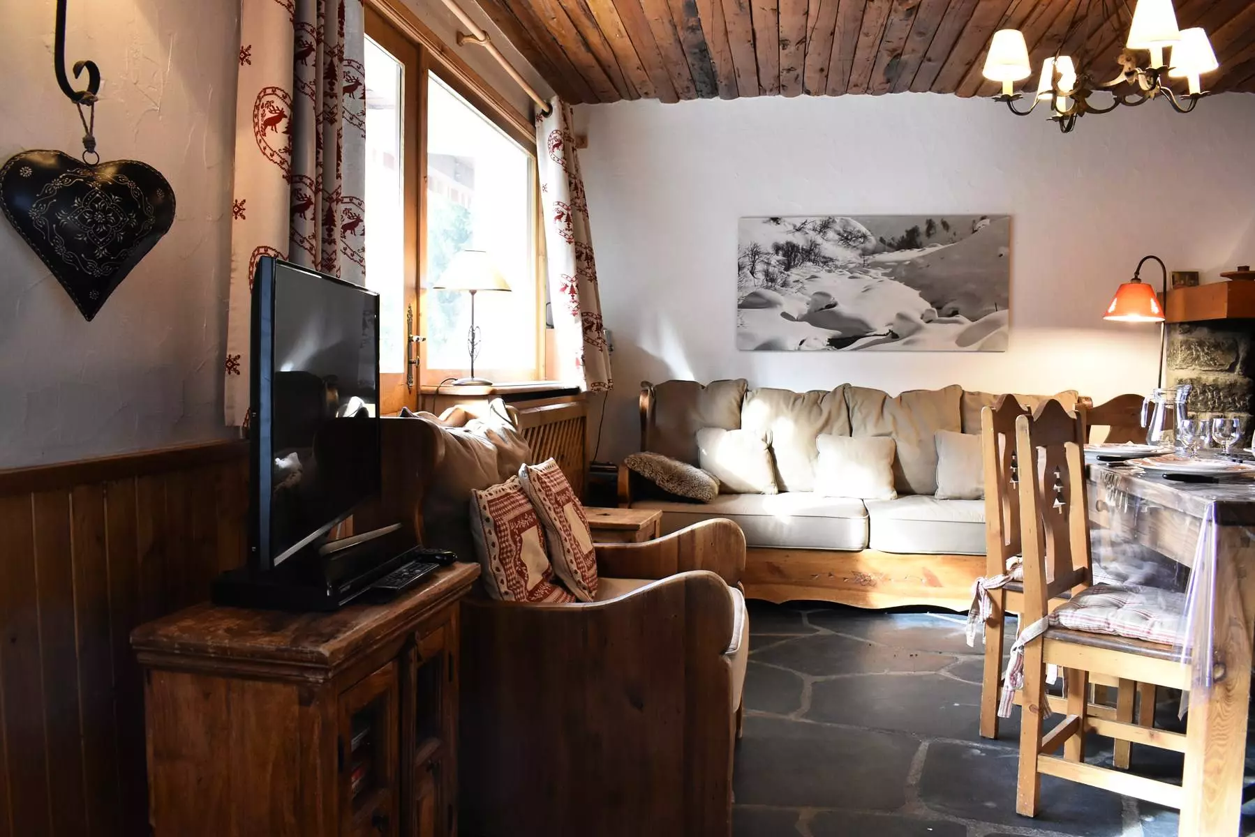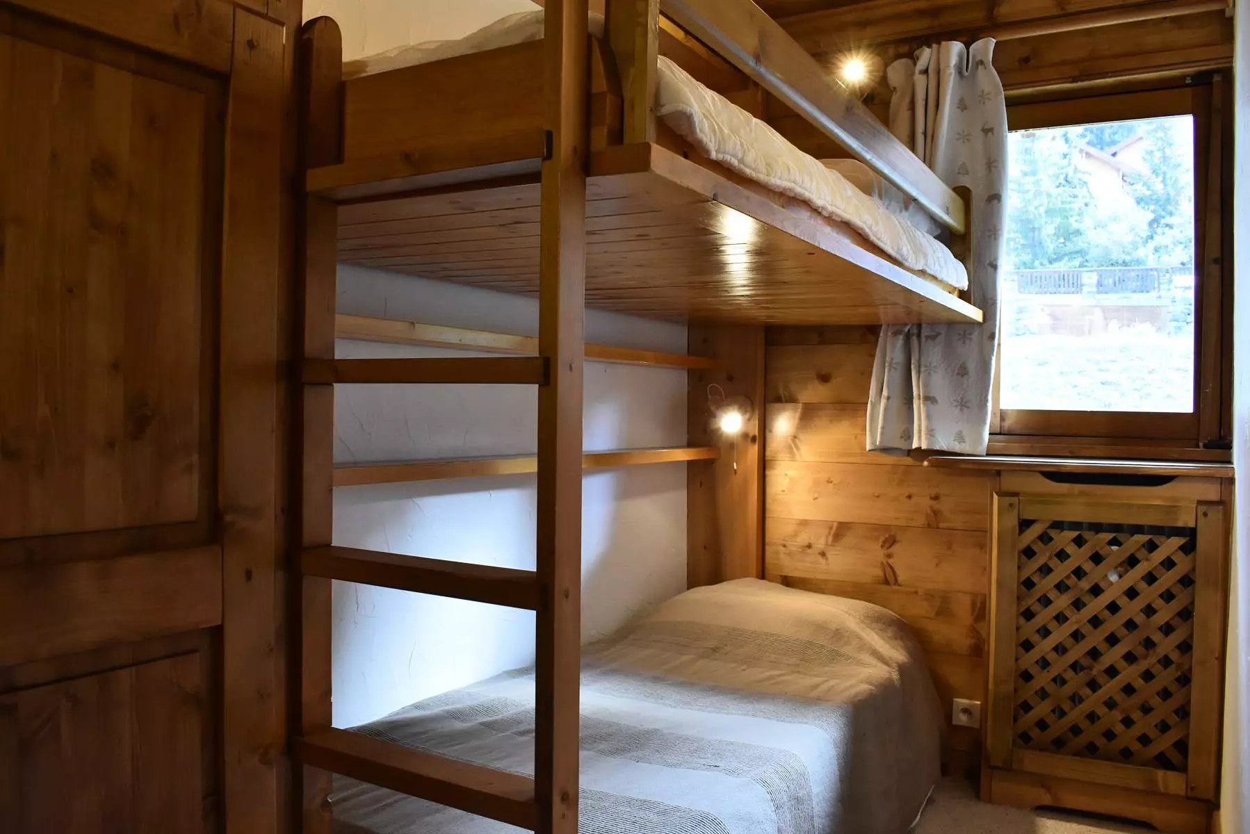 Cet appartement à la montagne situé au rez-de-chaussée haut, avec ascenseur, comprend une cuisine, un séjour avec un coin repas, une cheminée et une télévision avec une grande terrasse Sud. Il comprend aussi 1 chambre avec 1 lit 2 personnes en (140x190) exposée Sud/Est, une chambre avec 1 ensemble de lits superposés exposé (80x190) Et, une chambre avec 1 ensemble de lits superposés (80x190) exposé Est avec un coin lavabo, une salle de bain et un wc indépendant.
