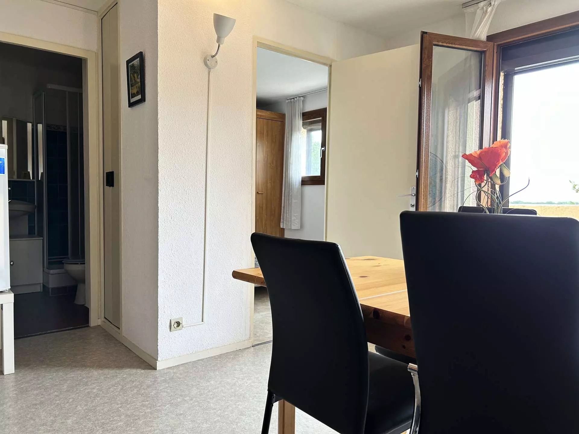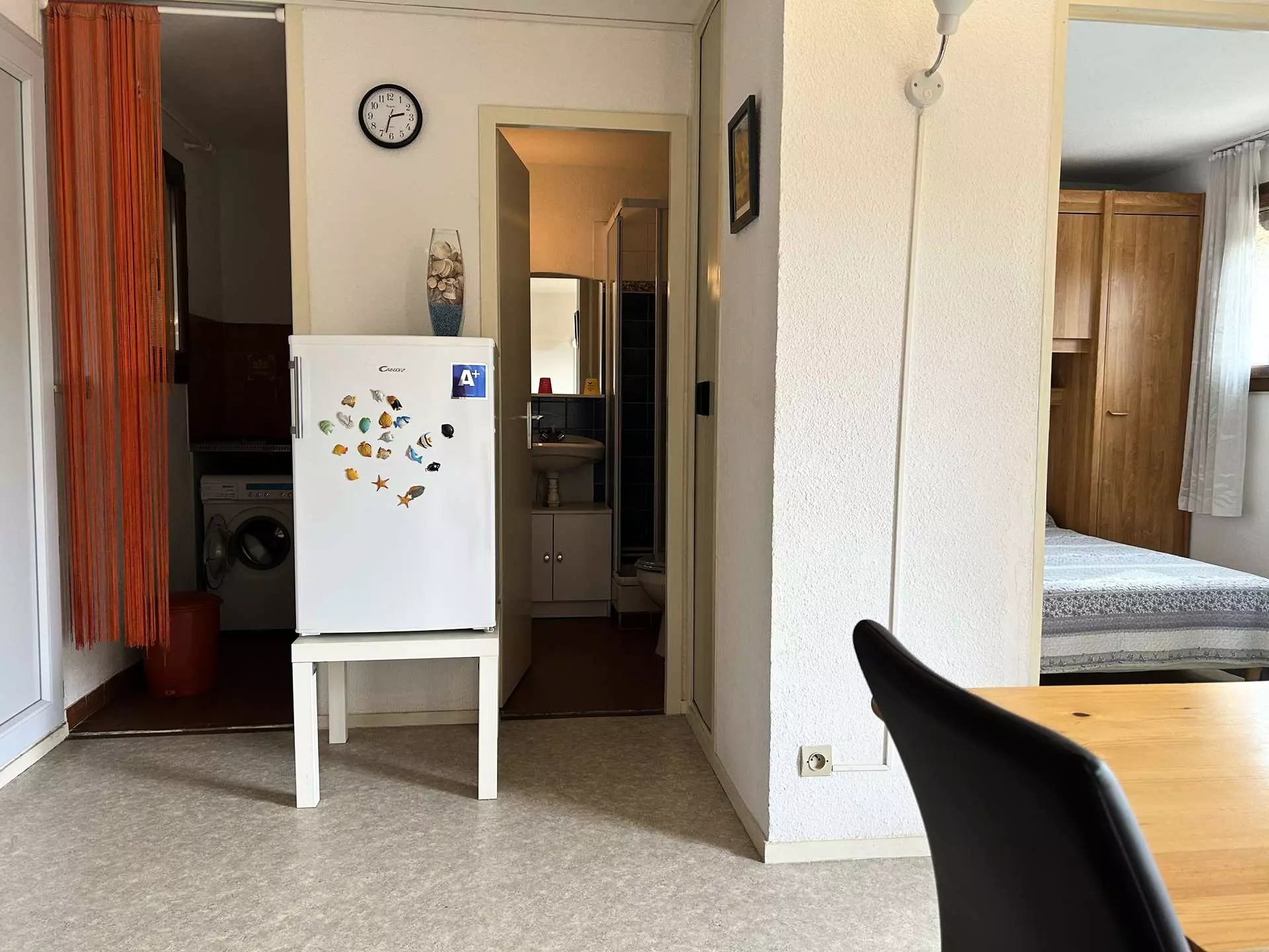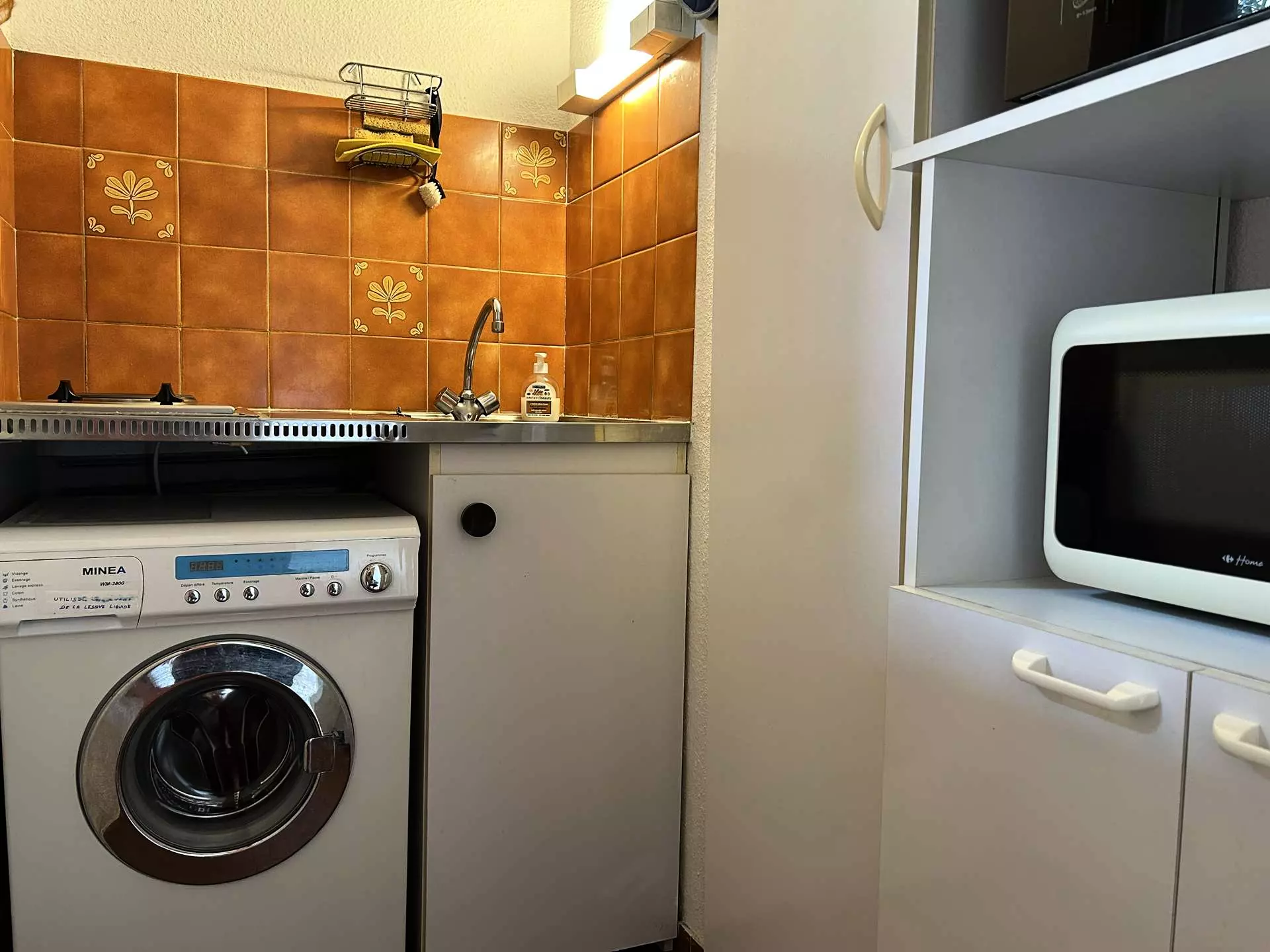 Cet appartement si situe au 1er étage sans ascenseur et se compose d'un séjour avec canapé convertible et téléviseur (sous réserve d'une bonne réception), un coin cuisine équipé, une chambre avec un lit pont (en 140), une salle d'eau avec wc. Un petit balcon sans vis à vis pour agrémenter ce bien.