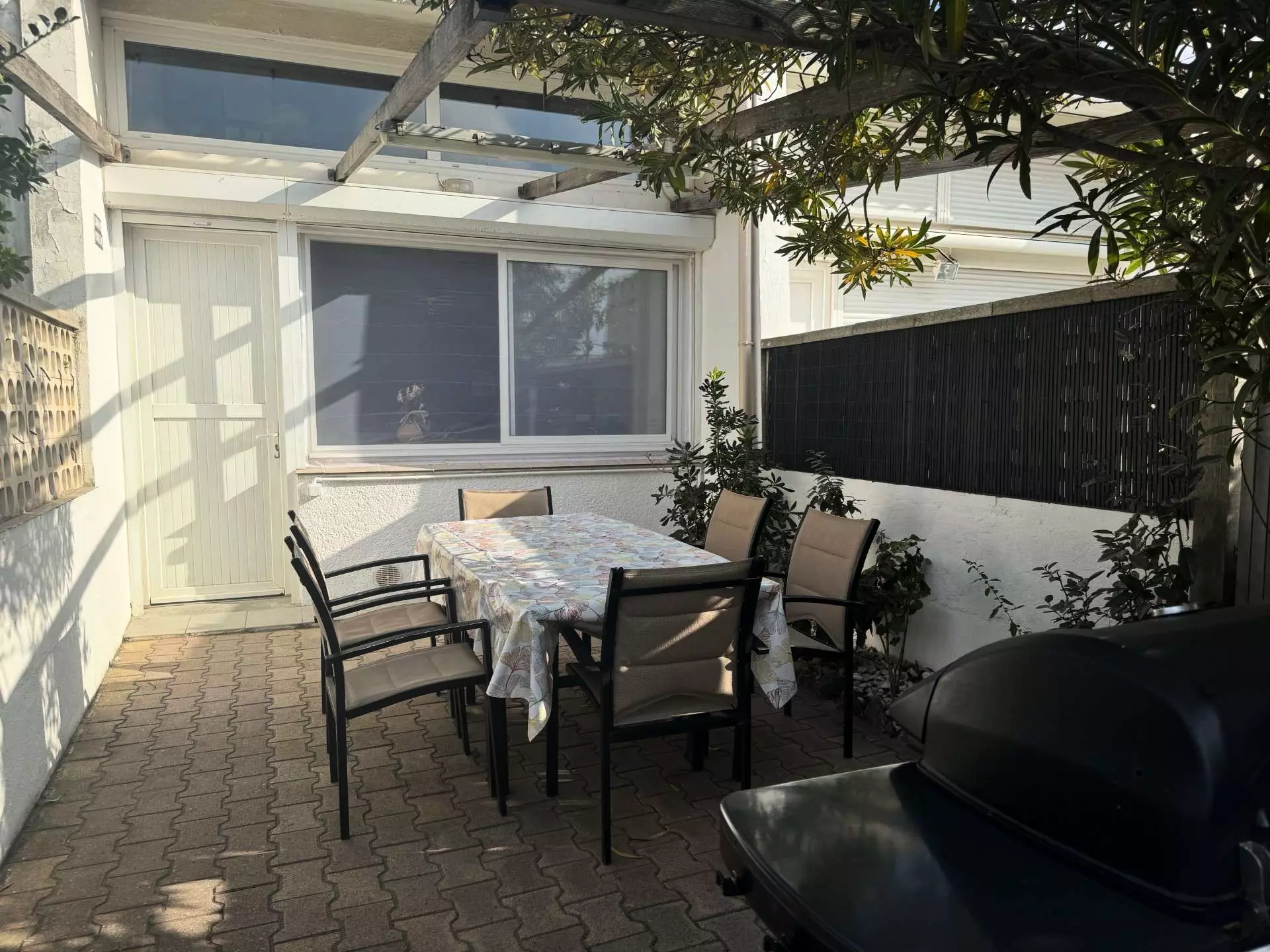 Pavillon individuel mitoyen, situé à 80m de la plage et à 500m du centre de la station, dans une impasse au calme, proche mer à pied.