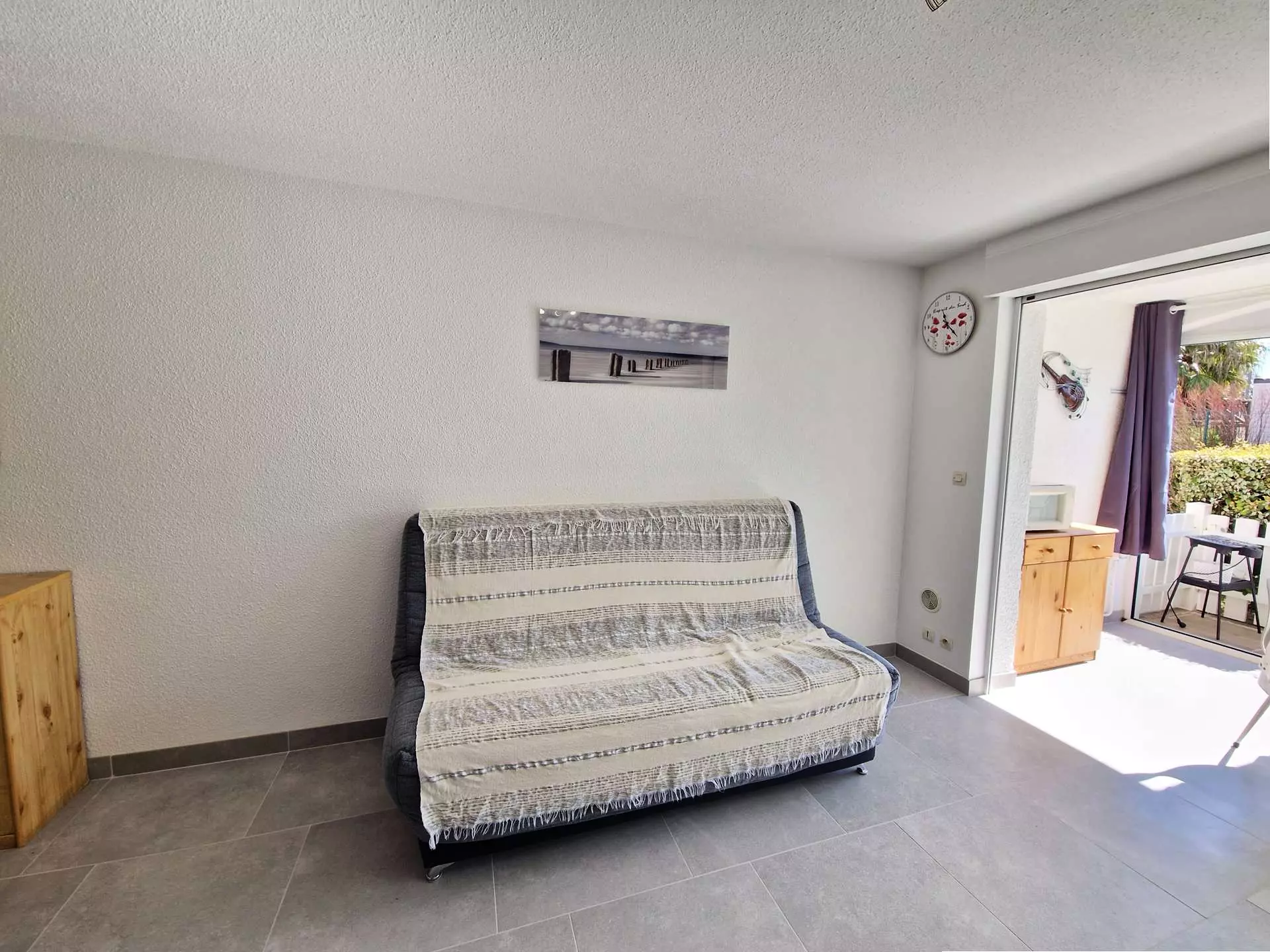- Séjour lumineux et climatisé : Un espace de vie cosy avec canapé convertible, télévision, table et chaises pour des moments de détente.