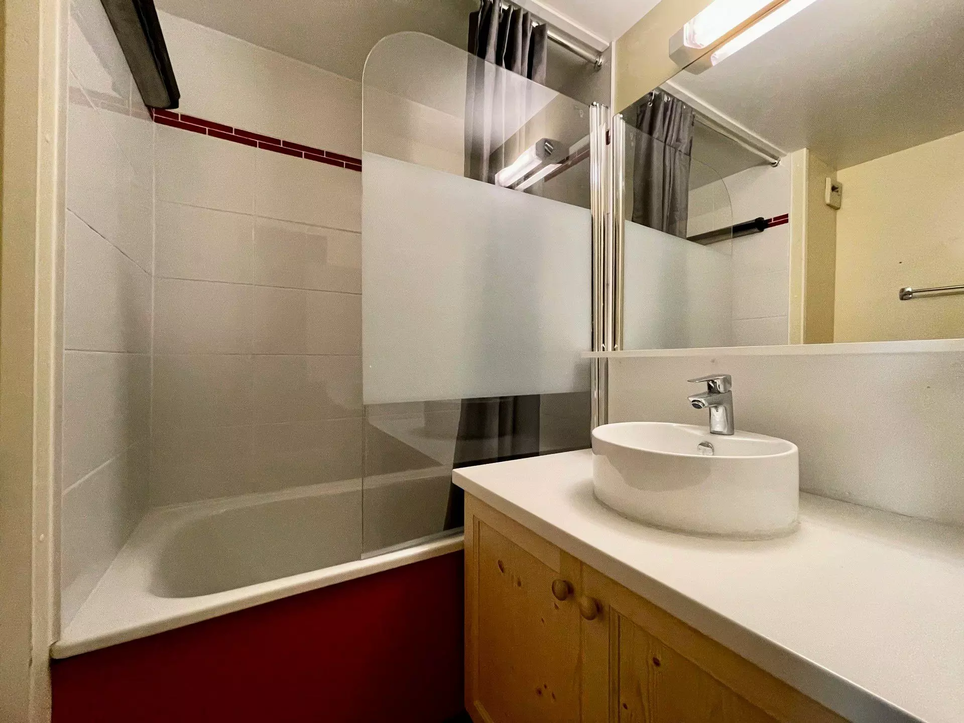 Les toilettes sont dans la salle de bains.