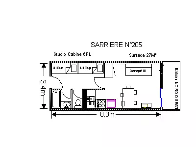 Résidence SARRIERE, studio cabine catégorie confort pour 6 personnes, Niveau 1P, vue montagne et piste, 29m² , exposé Sud, chauffage collectif.