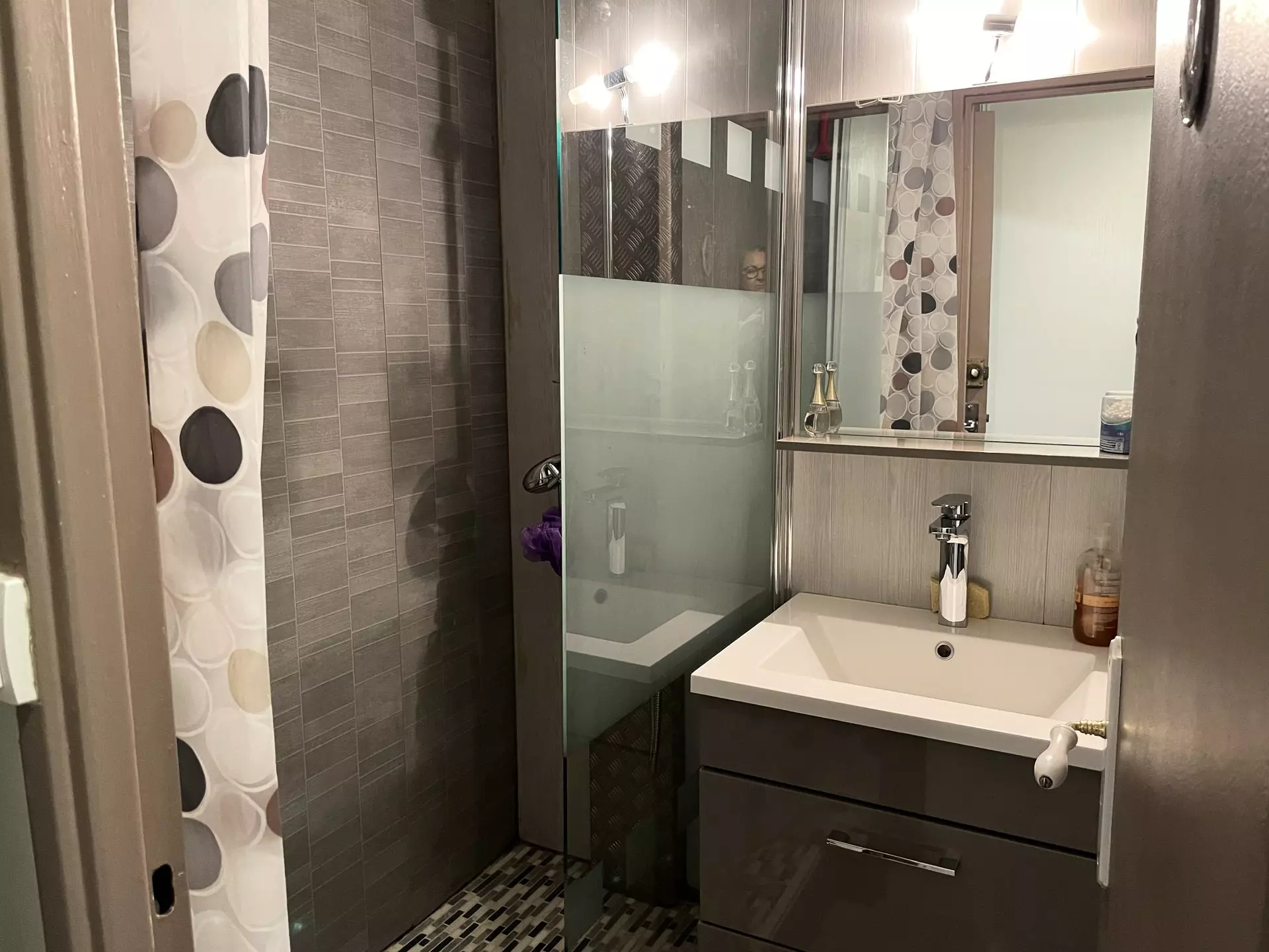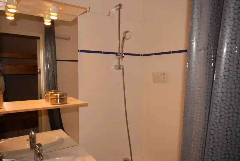 Salle d'eau avec lavabo, douche et WC indépendants.