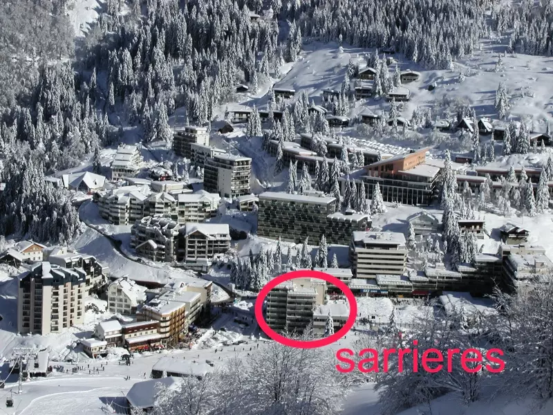 Résidence Sarrière n°20 sur le plan de la station, ascenseur. Commerces à 100m et pistes à 50m.