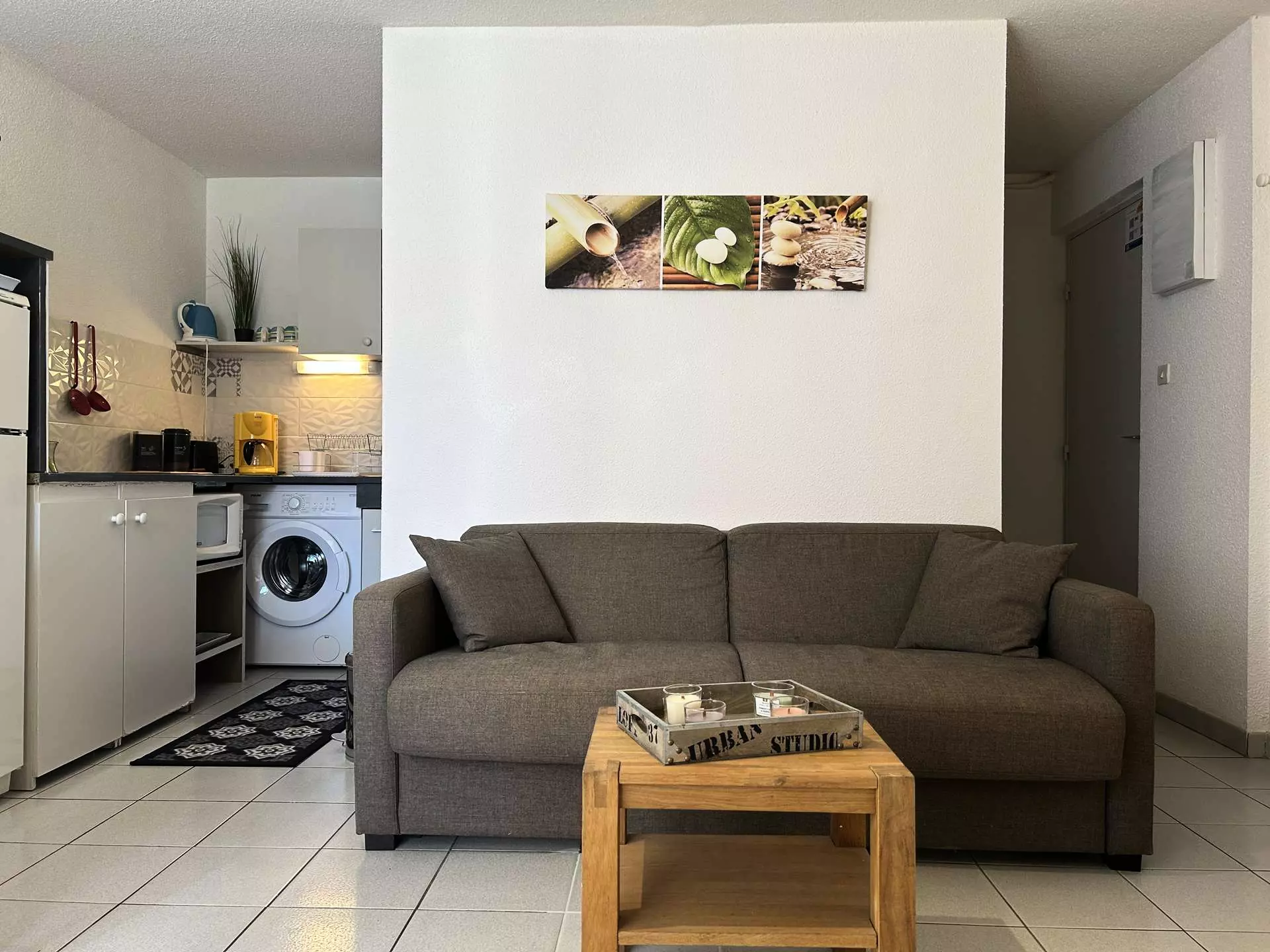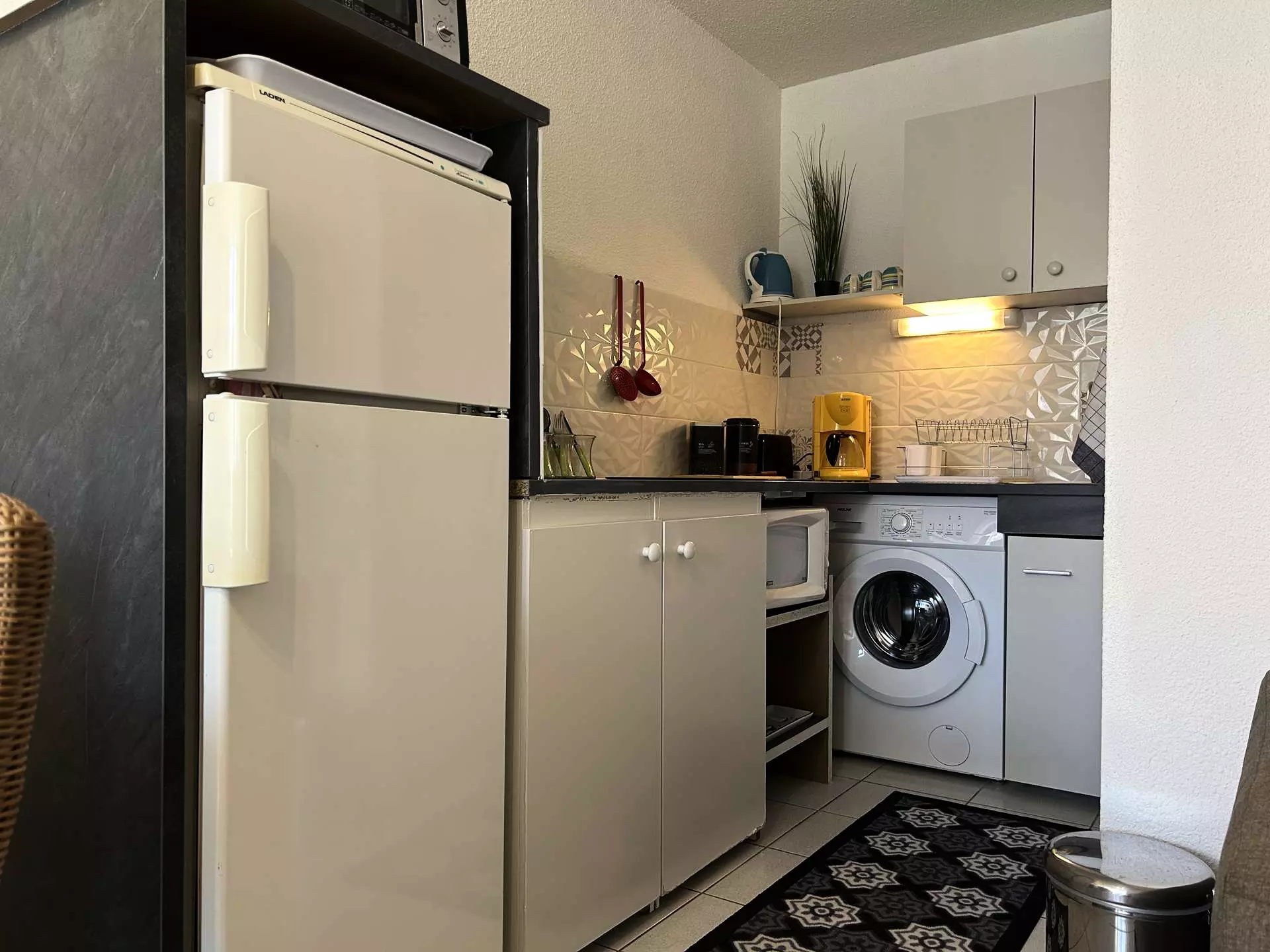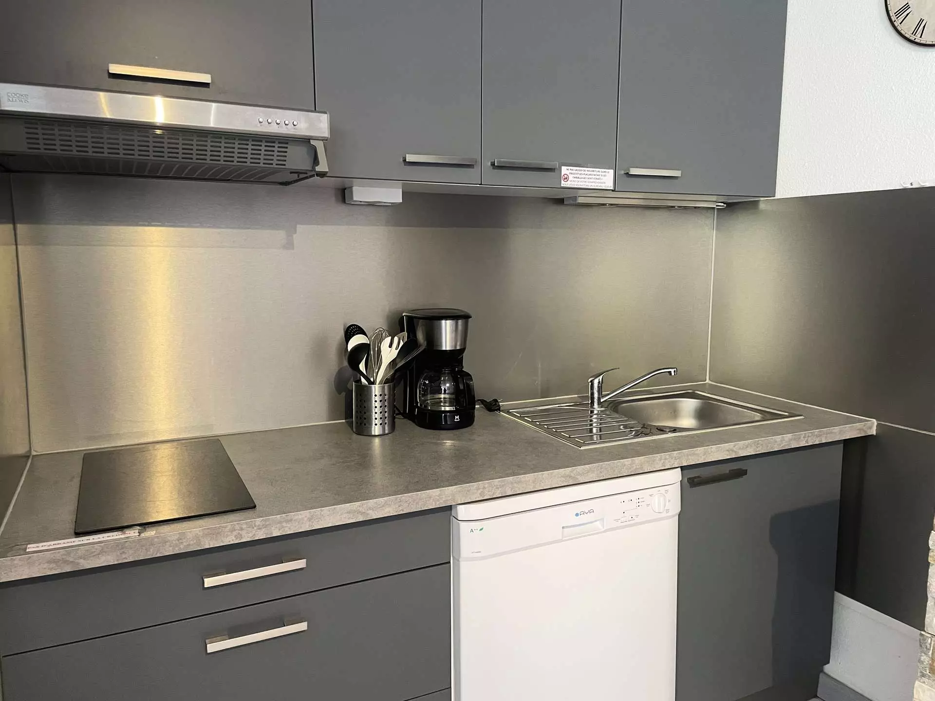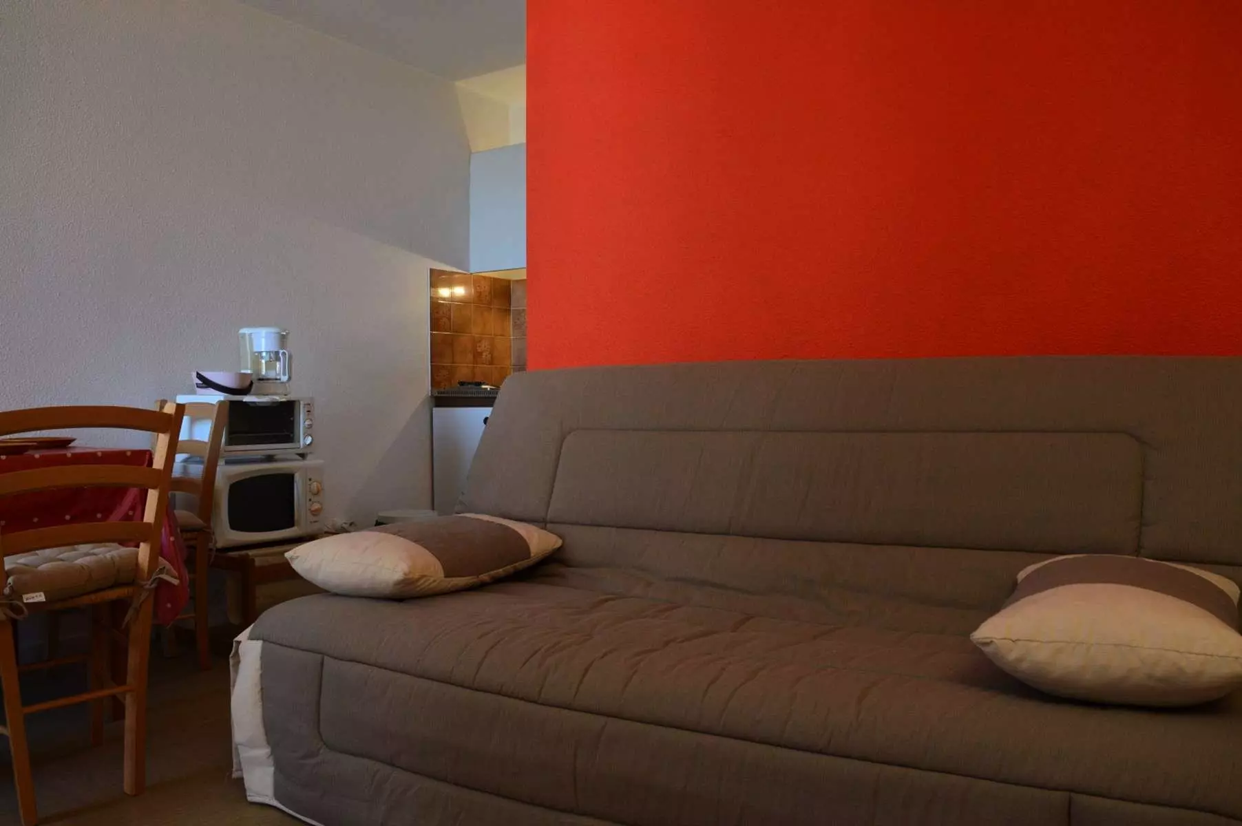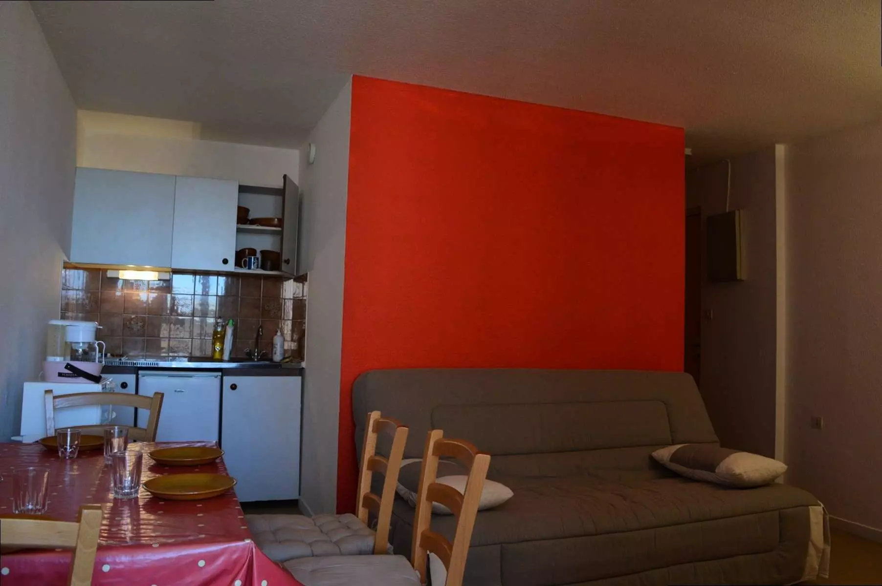 Cet appartement situé au rez de chaussée, se compose d'un séjour avec télévision écran plat (sous réserve d'une bonne réception) et canapé convertible pour 2 personnes, d'une kitchenette équipée, d'une chambre avec un lit double, d'une salle d'eau avec wc et d'une petite terrasse avec accès extérieur.