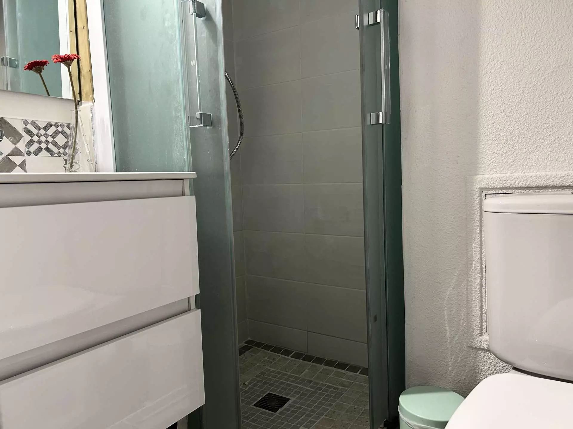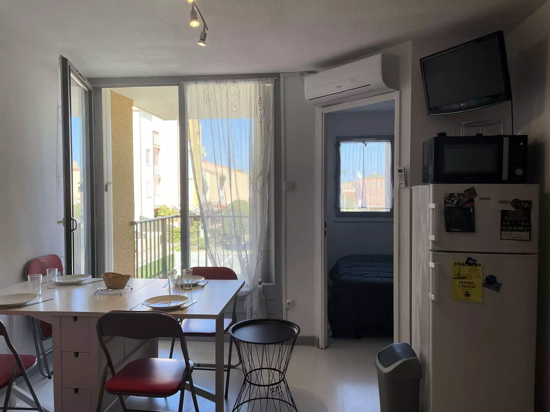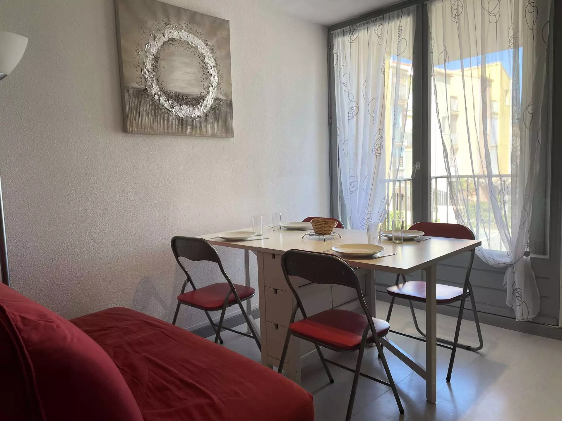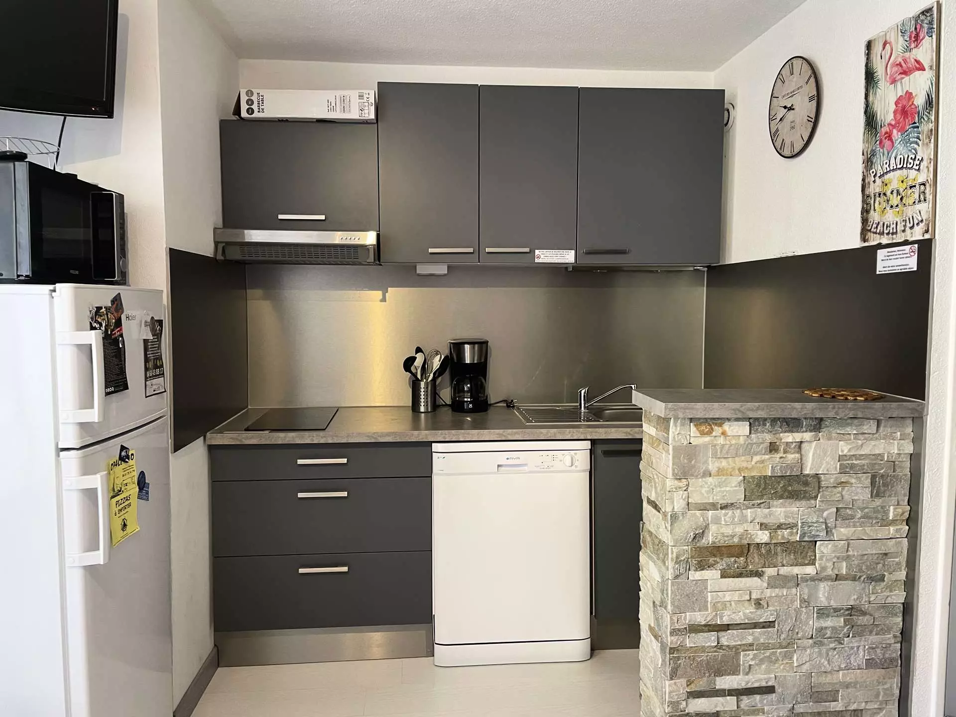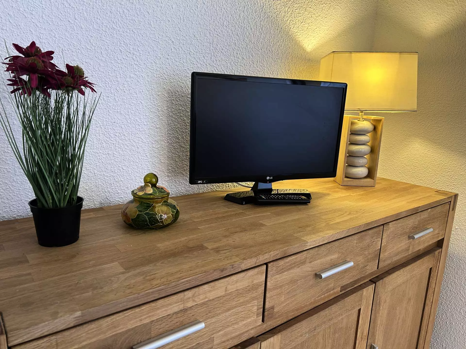 Cet appartement situé au rez de chaussée, se compose d'un séjour avec télévision écran plat (sous réserve d'une bonne réception) et canapé convertible pour 2 personnes, d'une kitchenette équipée, d'une chambre avec un lit double, d'une salle d'eau avec wc et d'une petite terrasse avec accès extérieur.