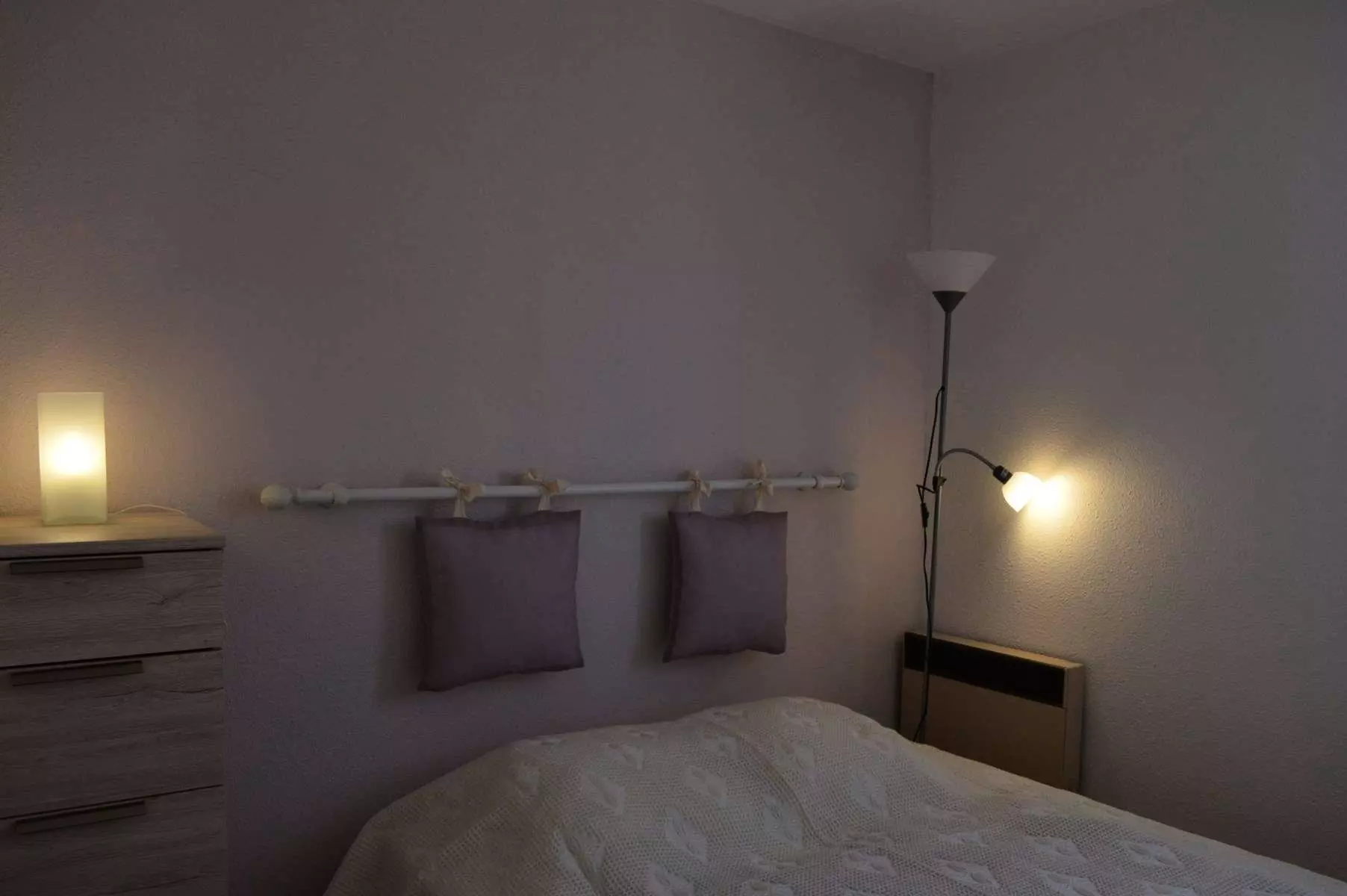 Ce logement de vacances en famille, situé au 1er étage sans ascenseur, se compose d'un séjour avec télévision (sous réserve d'une bonne réception) et canapé convertible deux personnes, d'un coin cuisine équipé, d'une salle d'eau avec wc et d'une chambre avec un lit deux personnes.