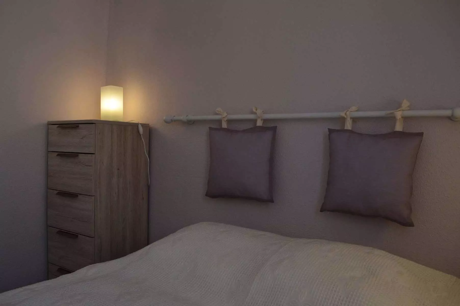 Cette location de vacances en familles, située au 3e et dernier étage, comprend un séjour avec télévision et canapé convertible 2 personnes, une cuisine équipée, un chambre avec un lit en 140, une salle d'eau avec toilettes et une mezzanine avec un lit 2 places (140) et une commode + des rangements cubes