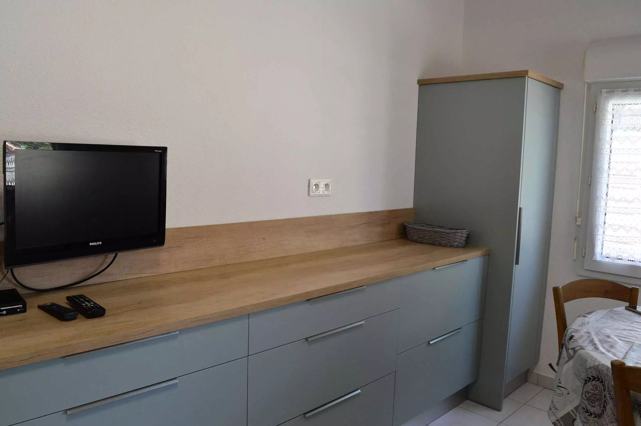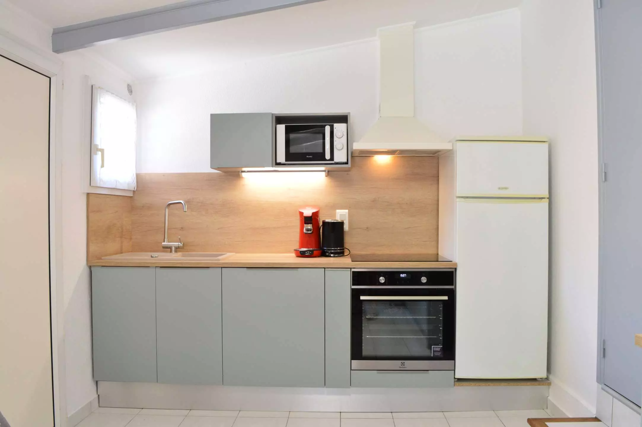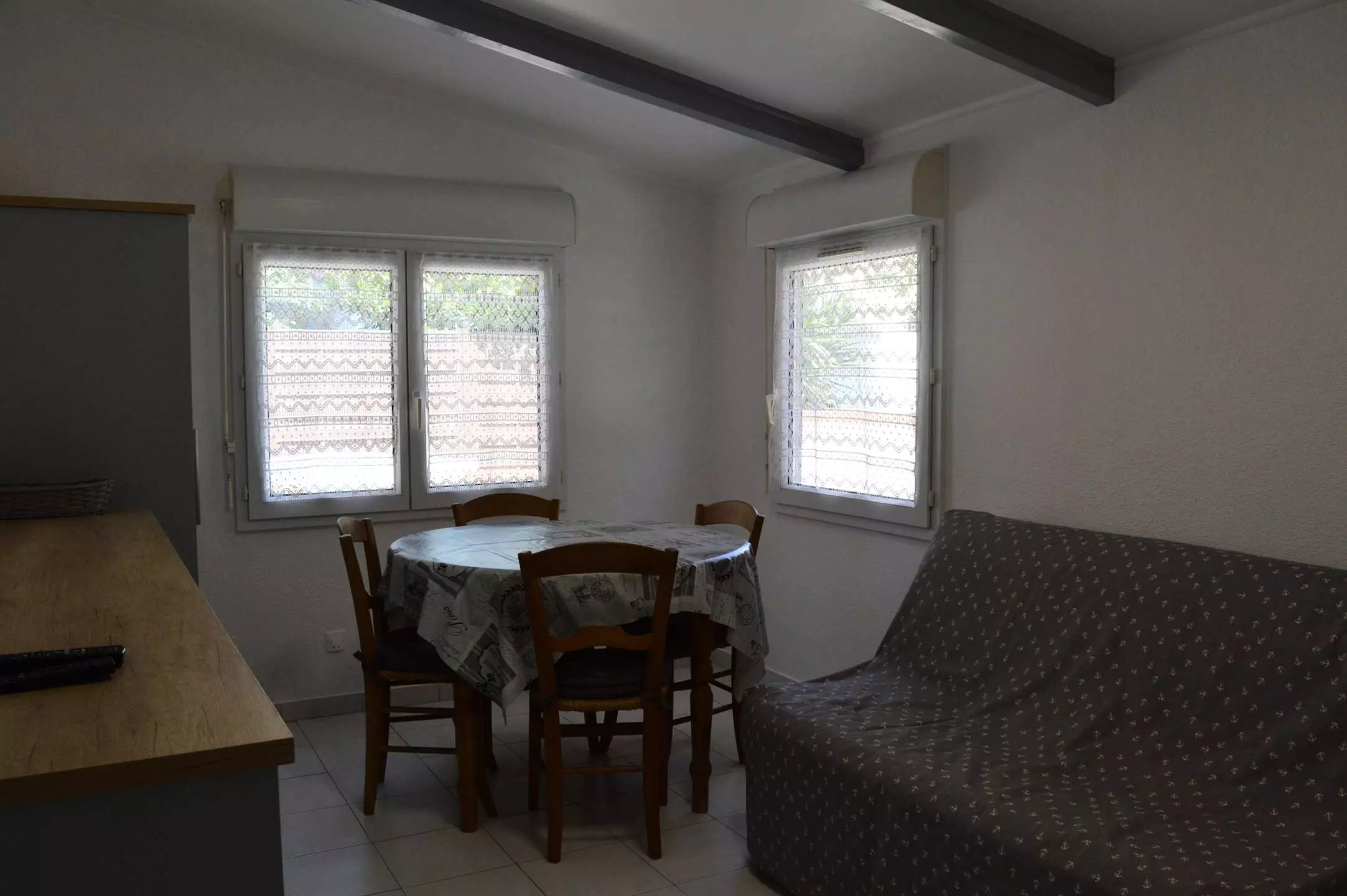 Cette location de maison de vacances comprend un séjour avec canapé convertible et télévision (sous réserve d'une bonne réception) , une coin cuisine équipée. La partie nuit, climatisée, comprend une chambre avec un lit deux personnes, une chambre avec deux lits une personne et une salle d'eau avec WC.