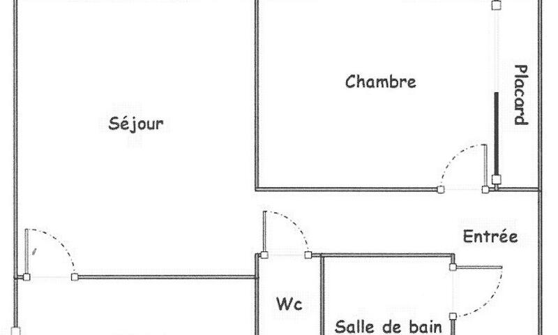 Entrée avec penderie, salle d'eau avec douche et lave-linge, wc séparé. une kitchenette séparée équipée (d'une plaque électrique, micro-ondes, grille-pain, cafetière électrique, bouilloire).