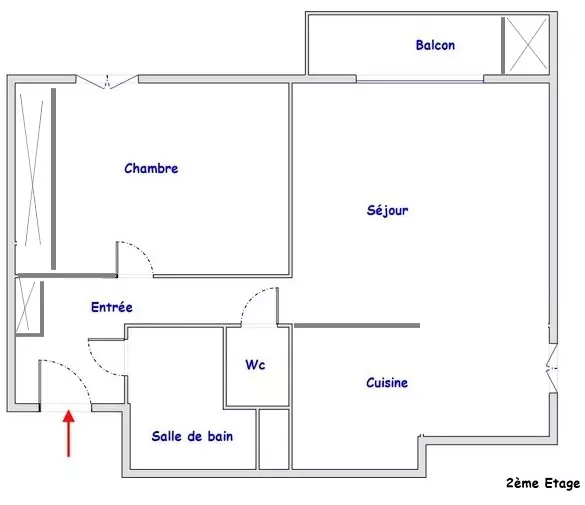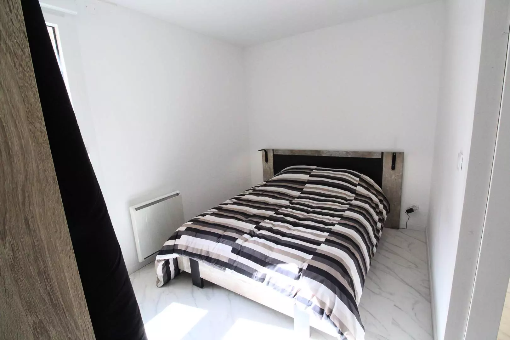 Entrée avec rangement, salle d'eau avec douche et lave linge, wc séparé. une chambre avec un lit en 140, placard.